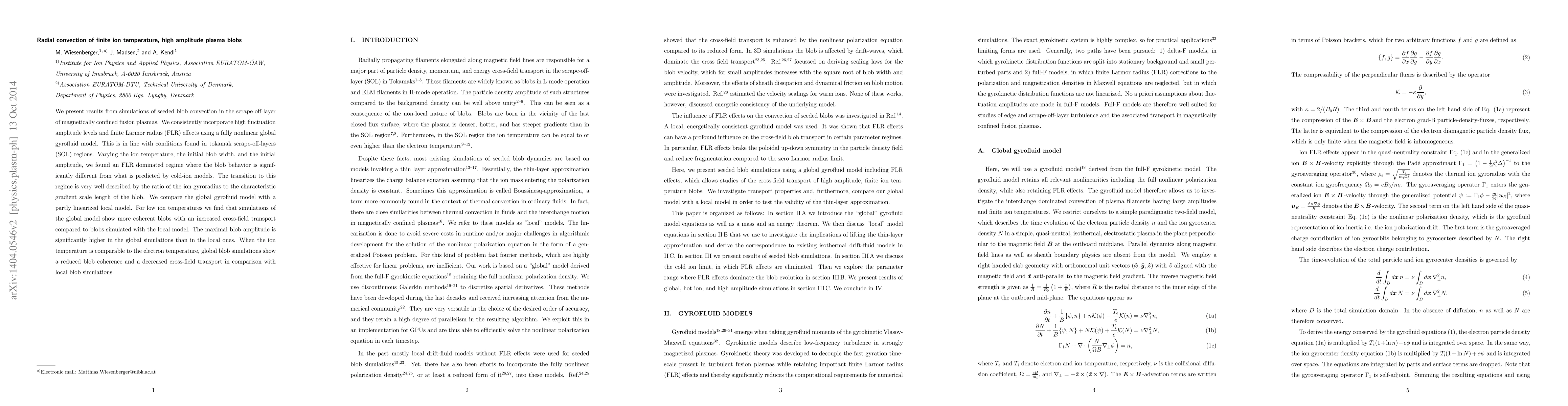 This paper investigates the radial convection of high amplitude plasma blobs in fusion plasmas using a fully nonlinear global gyrofluid model, finding significant differences in blob behavior compared to cold-ion models when finite Larmor radius effects are dominant. The study shows that global gyrofluid simulations produce more coherent blobs and higher maximal amplitudes than local models, especially at lower ion temperatures.