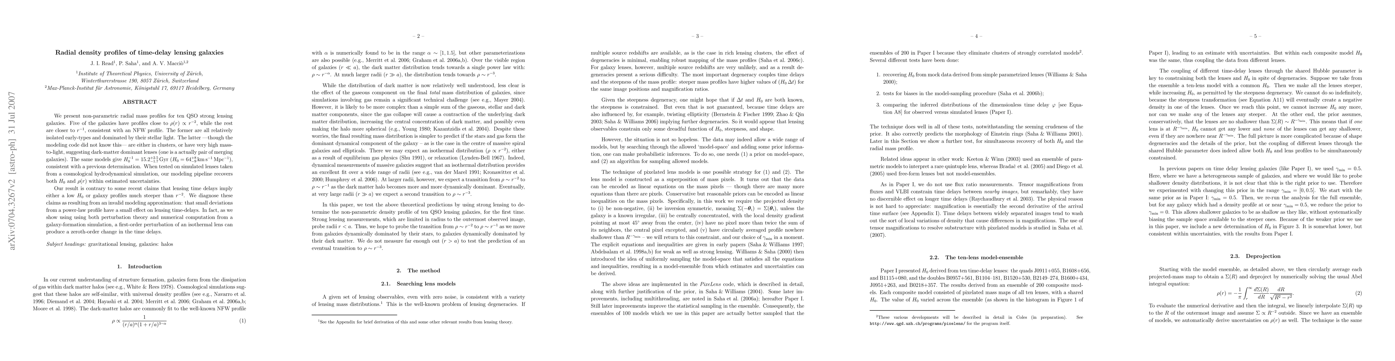 We present non-parametric radial mass profiles for ten QSO strong lensing galaxies. Five of the galaxies have profiles close to $\rho(r)\propto r^{-2}$, while the rest are closer to r^{-1}, consistent with an NFW profile. The former are all relatively isolated early-types and dominated by their stellar light. The latter --though the modeling code did not know this-- are either in clusters, or have very high mass-to-light, suggesting dark-matter dominant lenses (one is a actually pair of merging galaxies). The same models give $H_0^{-1} = 15.2_{-1.7}^{+2.5}\Gyr$ ($H_0 = 64_{-9}^{+8} \legacy$), consistent with a previous determination. When tested on simulated lenses taken from a cosmological hydrodynamical simulation, our modeling pipeline recovers both H_0 and $\rho(r)$ within estimated uncertainties. Our result is contrary to some recent claims that lensing time delays imply either a low H_0 or galaxy profiles much steeper than r^{-2}. We diagnose these claims as resulting from an invalid modeling approximation: that small deviations from a power-law profile have a small effect on lensing time-delays. In fact, as we show using using both perturbation theory and numerical computation from a galaxy-formation simulation, a first-order perturbation of an isothermal lens can produce a zeroth-order change in the time delays.