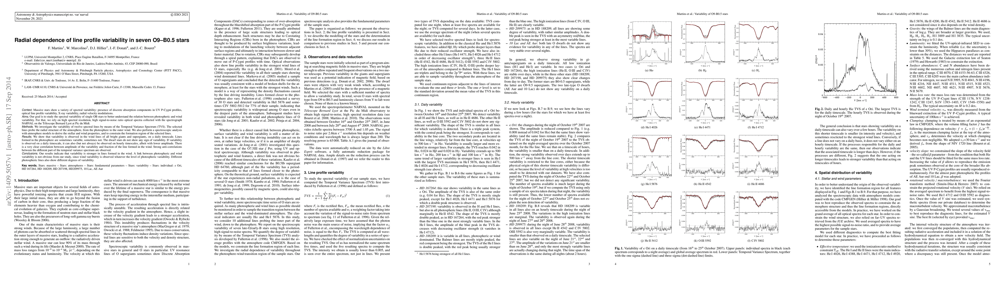 This study investigates the radial dependence of line profile variability in seven O9-B0.5 stars using high-resolution optical spectra, revealing that wind lines exhibit significant daily variability, while photospheric lines show variable behavior. The research finds a strong correlation between variability amplitude and the line formation region in the wind, suggesting a link between wind and photospheric variability is not evident.