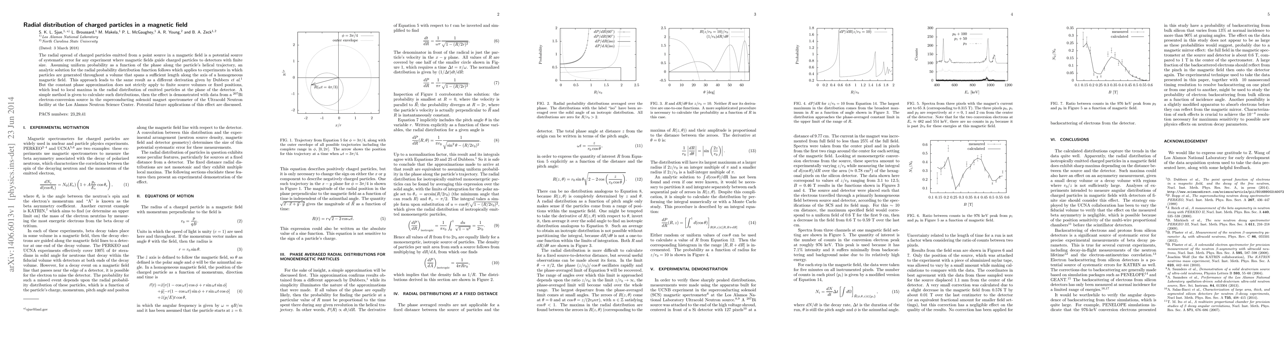 This paper derives an analytic solution for the radial distribution of charged particles in a magnetic field, showing that the constant phase approximation leads to local maxima in the distribution at the detector plane. It demonstrates the method using data from a $^{207}$Bi electron-conversion source, highlighting potential future applications in particle detection experiments.