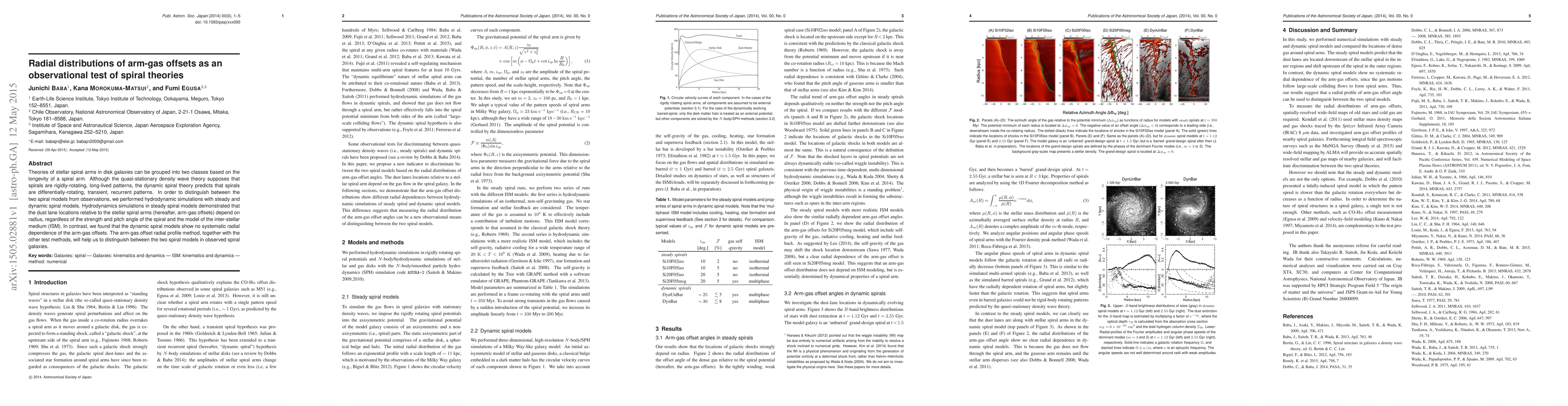 This study compares two spiral galaxy models via hydrodynamic simulations. It finds that steady models show arm-gas offsets varying with radius, while dynamic models don't. The research suggests using arm-gas offset radial profiles to differentiate between these models in observations.