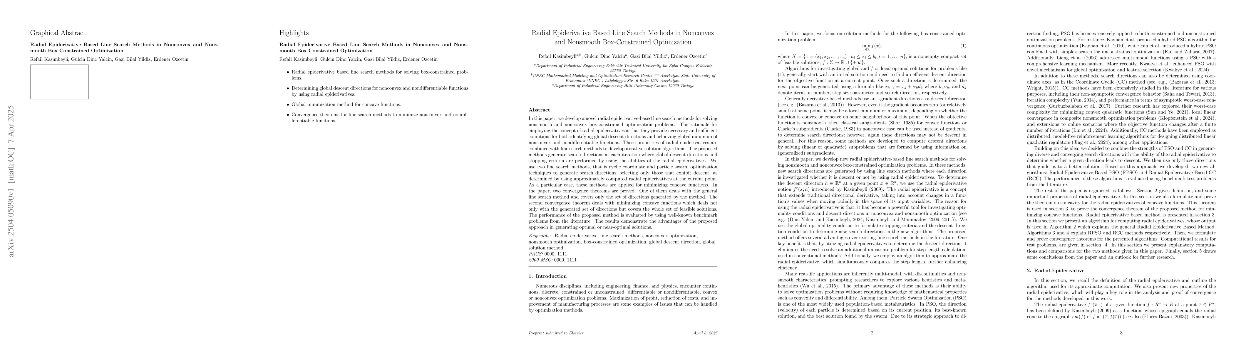 The paper introduces radial epiderivative-based line search methods for nonconvex and nonsmooth box-constrained optimization, combining them with cyclic coordinate and particle swarm optimization techniques.