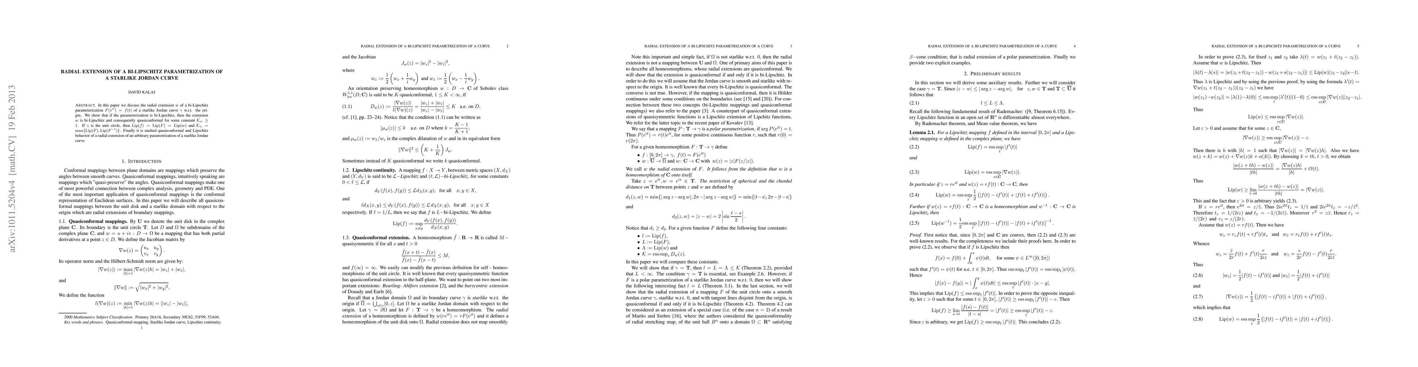This paper discusses the radial extension of a bi-Lipschitz parameterization of a starlike Jordan curve to show that the extension is also bi-Lipschitz and quasiconformal. It finds that for the unit circle, the Lipschitz constants are equal, while for non-circular curves, the extension has a higher Lipschitz constant.