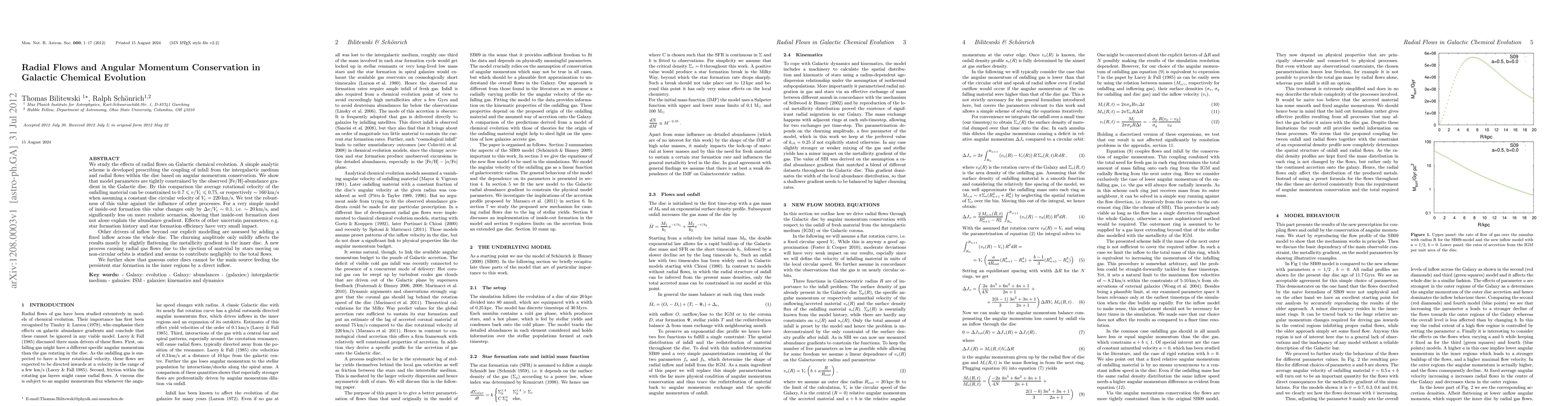 This paper develops an analytic model to study the impact of radial flows on Galactic chemical evolution, emphasizing angular momentum conservation. It finds that the average rotational velocity of infalling material is constrained to ~160 km/s, with minor variations due to inside-out formation and other processes.