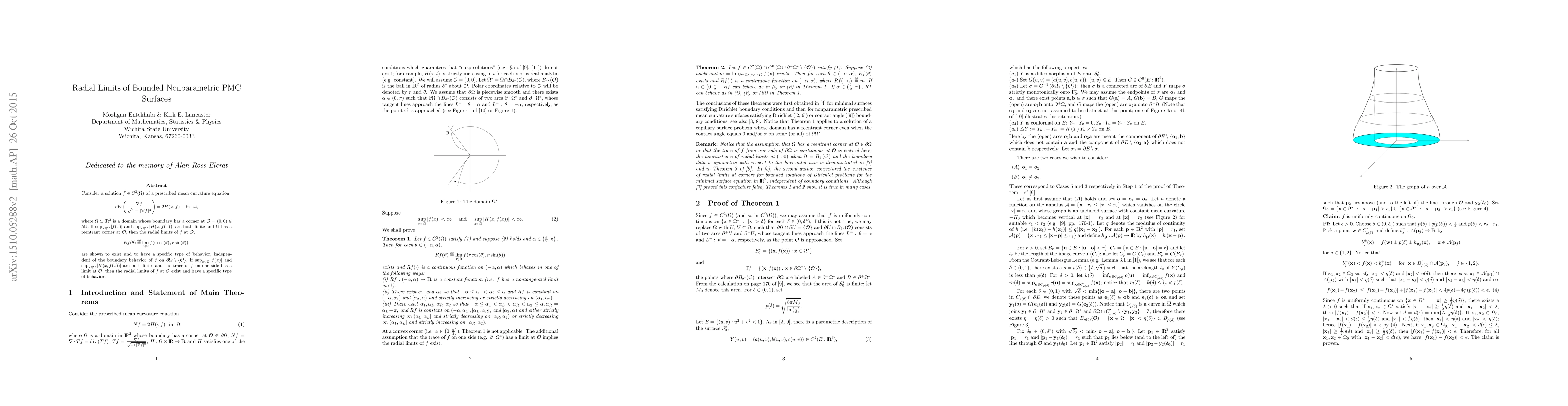 Consider a solution $f\in C^{2}(\Omega)$ of a prescribed mean curvature equation \[ {\rm div}\left(\frac{\nabla f}{\sqrt{1+|\nabla f|^{2}}}\right)=2H(x,f) \ \ \ \ {\rm in} \ \ \Omega, \] where $\Omega\subset \Real^{2}$ is a domain whose boundary has a corner at ${\cal O}=(0,0)\in\partial\Omega.$ If $\sup_{x\in\Omega} |f(x)|$ and $\sup_{x\in\Omega} |H(x,f(x))|$ are both finite and $\Omega$ has a reentrant corner at ${\cal O},$ then the radial limits of $f$ at ${\cal O},$ \[ Rf(\theta) \myeq \lim_{r\downarrow 0} f(r\cos(\theta),r\sin(\theta)), \] are shown to exist and to have a specific type of behavior, independent of the boundary behavior of $f$ on $\partial\Omega.$ If $\sup_{x\in\Omega} |f(x)|$ and $\sup_{x\in\Omega} |H(x,f(x))|$ are both finite and the trace of $f$ on one side has a limit at ${\cal O},$ then the radial limits of $f$ at ${\cal O}$ exist and have a specific type of behavior.