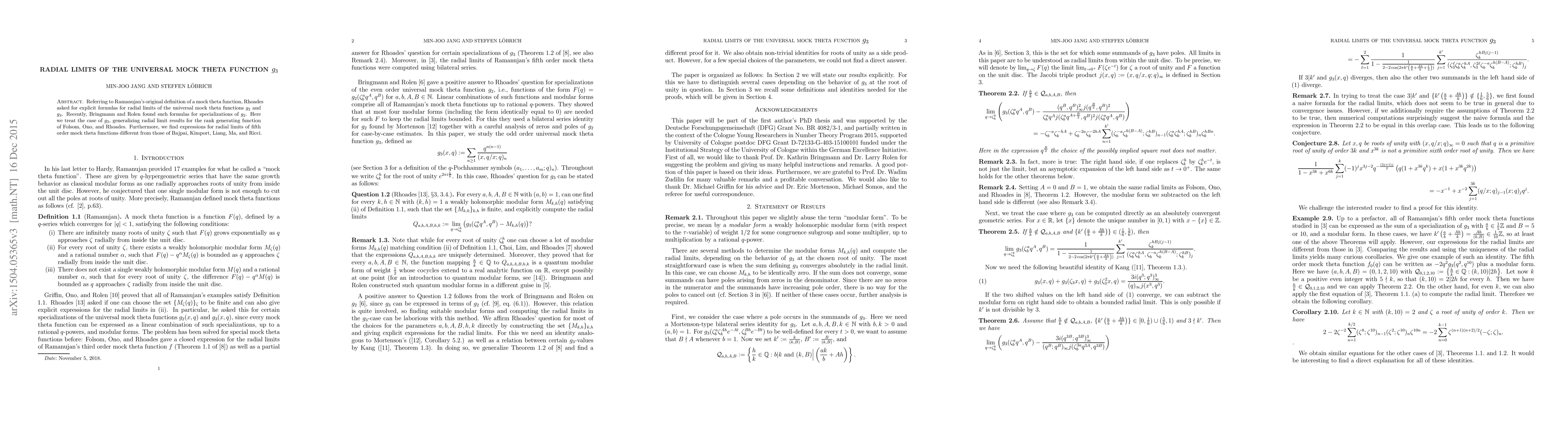 This paper derives explicit formulas for the radial limits of the universal mock theta function $g_3$, extending previous results for $g_2$ and providing new insights into the rank generating function. It also presents distinct radial limit expressions for fifth order mock theta functions.