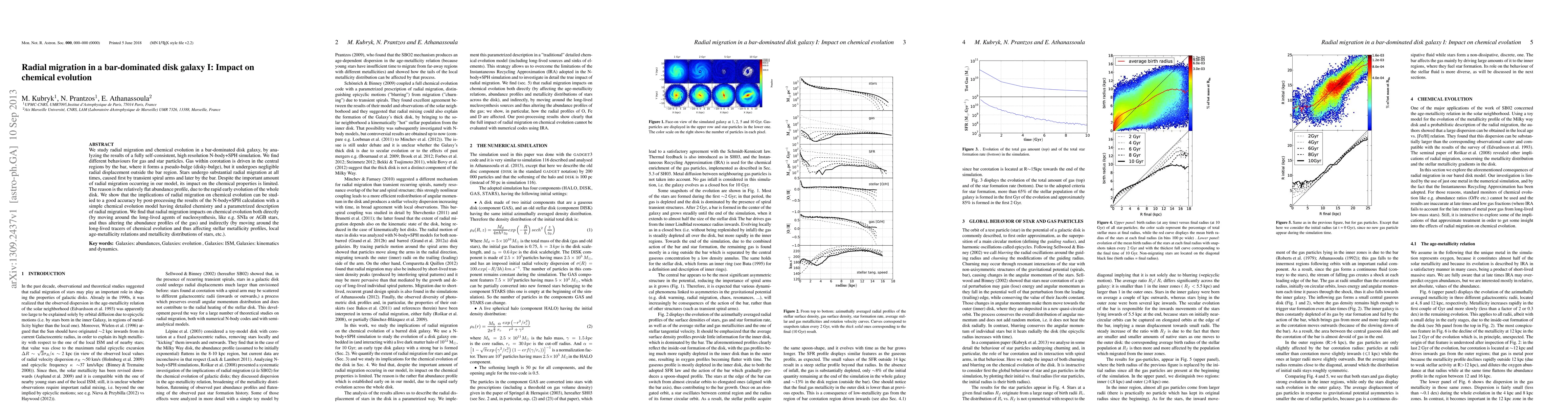 This study investigates radial migration and its impact on chemical evolution in a bar-dominated disk galaxy using high-resolution N-body+SPH simulations. While gas and stars exhibit different migration behaviors, radial migration's effect on chemical properties is limited due to a flat abundance profile. The research concludes that a simplified chemical evolution model can accurately study the direct and indirect impacts of radial migration on chemical evolution.