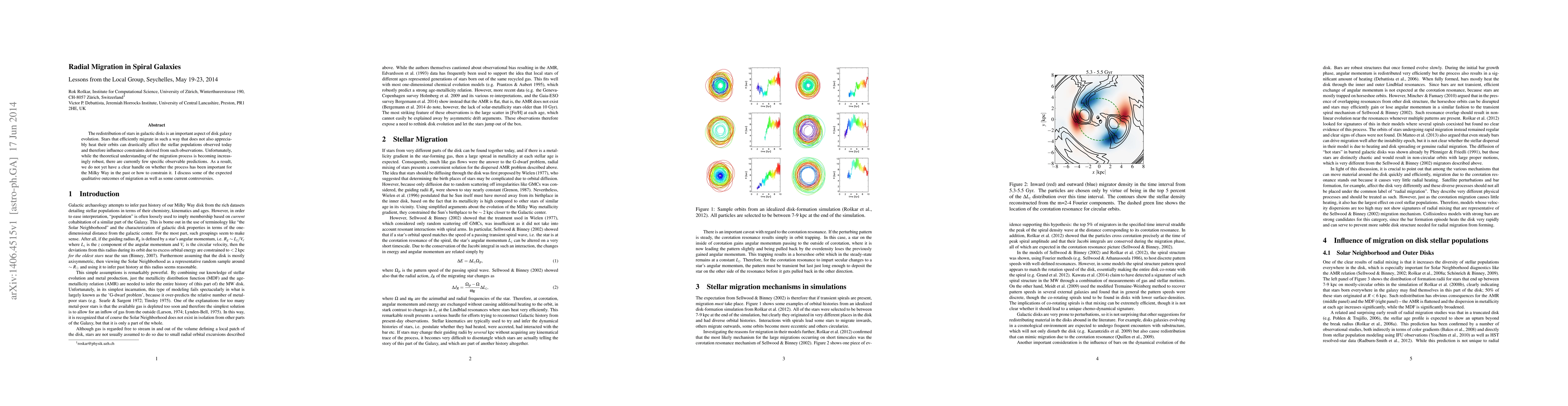 The redistribution of stars in galactic disks is an important aspect of disk galaxy evolution. Stars that efficiently migrate in such a way that does not also appreciably heat their orbits can drastically affect the stellar populations observed today and therefore influence constraints derived from such observations. Unfortunately, while the theoretical understanding of the migration process is becoming increasingly robust, there are currently few specific observable predictions. As a result, we do not yet have a clear handle on whether the process has been important for the Milky Way in the past or how to constrain it. I discuss some of the expected qualitative outcomes of migration as well as some current controversies.