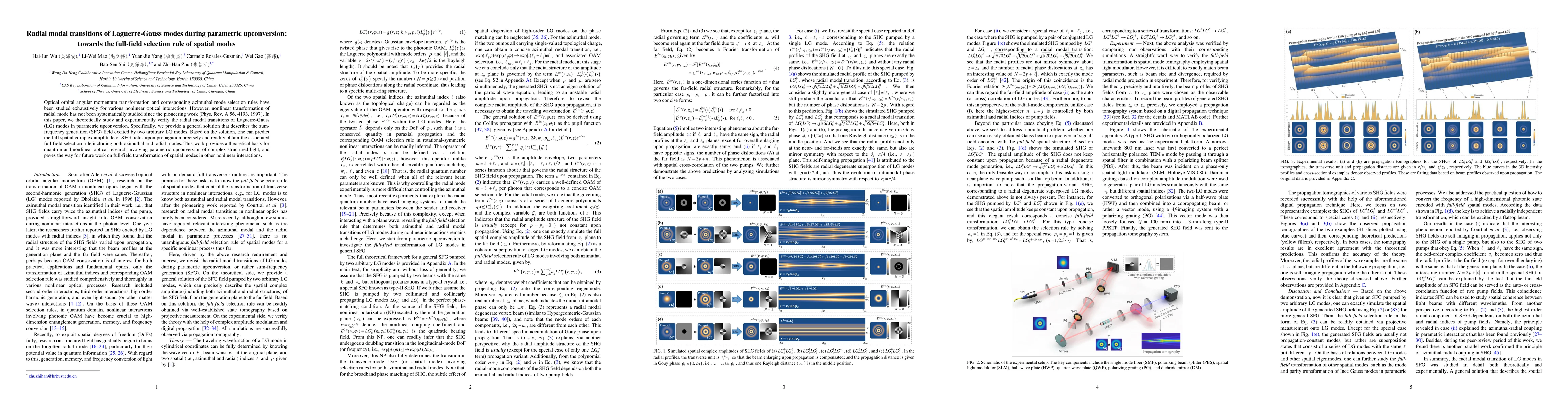 This paper theoretically and experimentally investigates the radial modal transitions of Laguerre-Gauss modes during parametric upconversion, providing a general solution for sum-frequency generation and predicting the full-field selection rule for both azimuthal and radial modes. This research lays a foundation for future studies on spatial mode transformations in nonlinear optical processes.