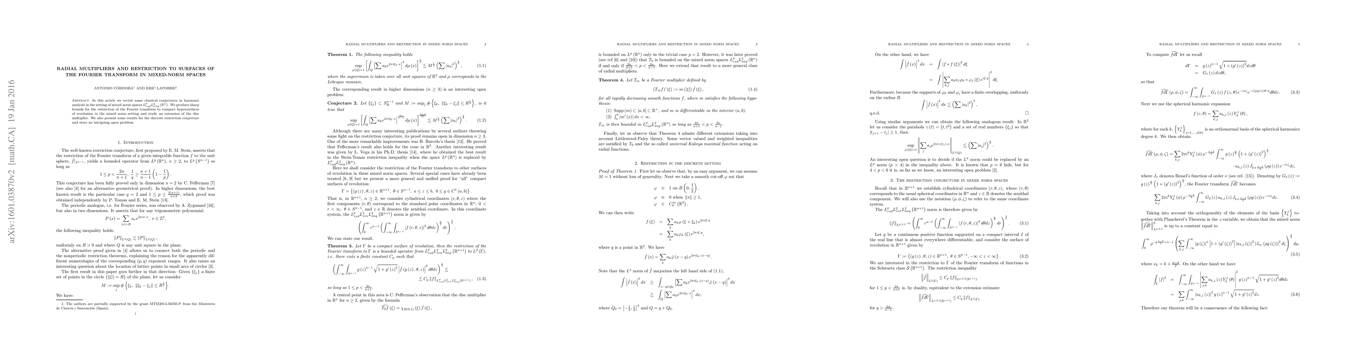 This paper revisits classical harmonic analysis conjectures in mixed-norm spaces, producing sharp bounds for the Fourier transform's restriction to compact hypersurfaces of revolution and exploring an extension of the disc multiplier. It also discusses results for the discrete restriction conjecture and poses an open problem.