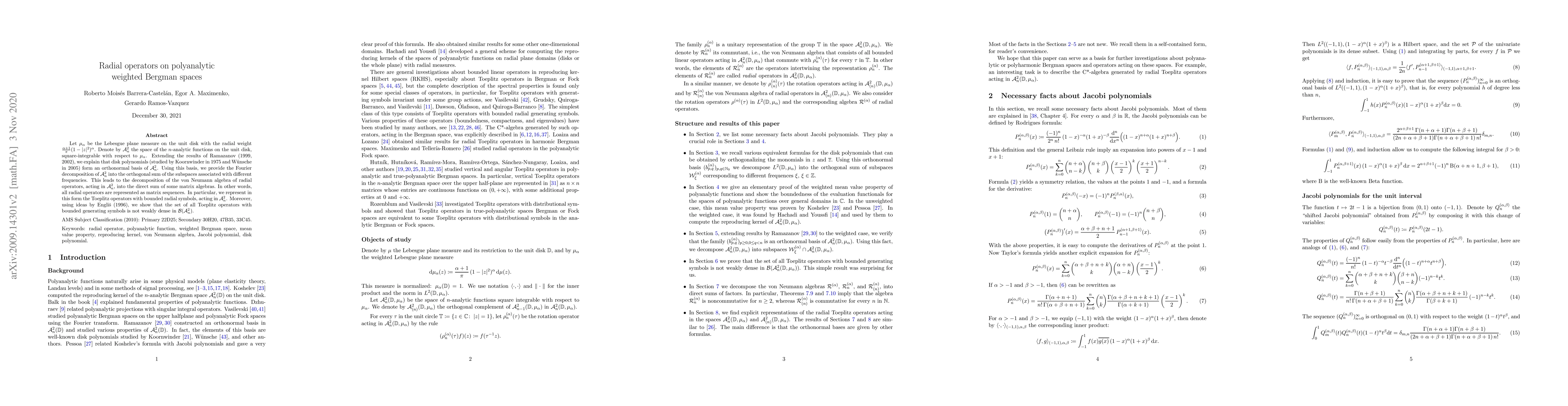 This paper shows that disk polynomials form an orthonormal basis for a space of functions on the unit disk, leading to a matrix representation of radial operators.