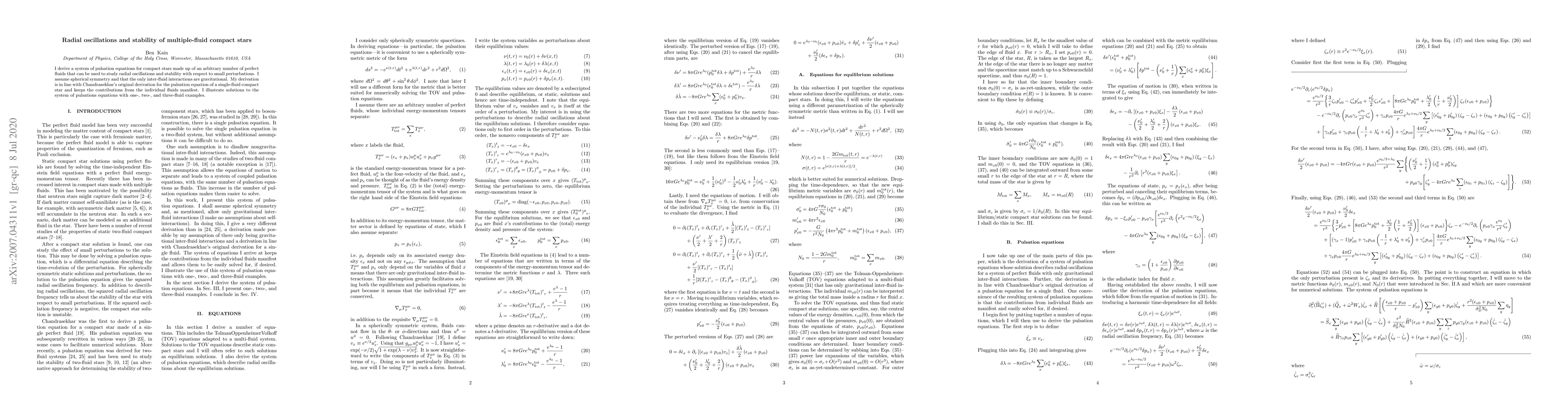 This paper derives a set of pulsation equations for multi-fluid compact stars, enabling the study of radial oscillations and stability under small perturbations. The derivation is consistent with Chandrasekhar's method for single-fluid stars and explicitly considers gravitational interactions among fluids.