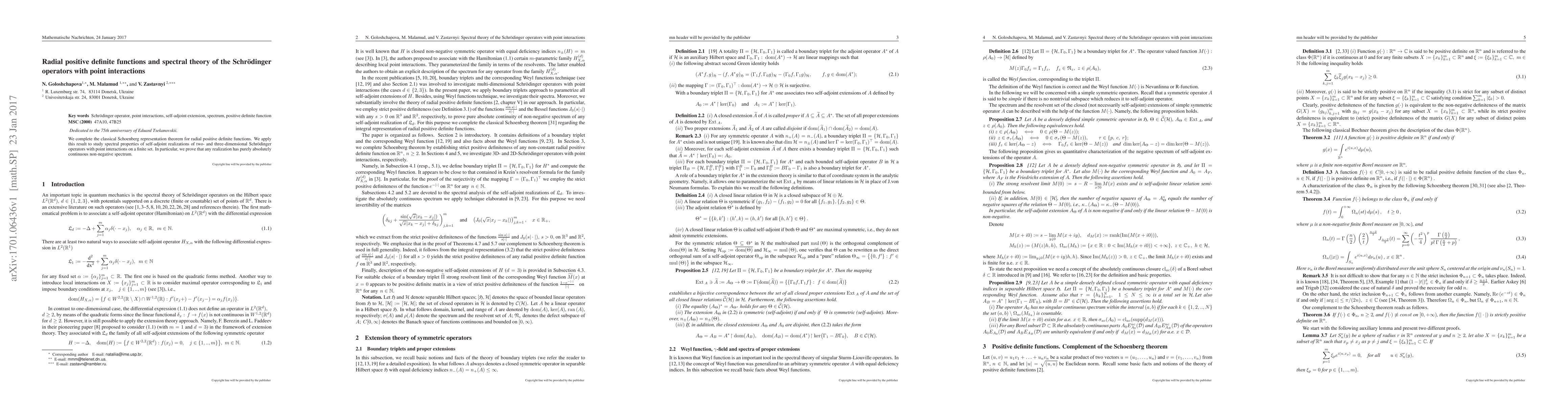 This paper completes Schoenberg's representation theorem for radial positive definite functions and applies it to analyze the spectral properties of Schrödinger operators with point interactions. It proves that such operators have purely absolutely continuous non-negative spectrum.