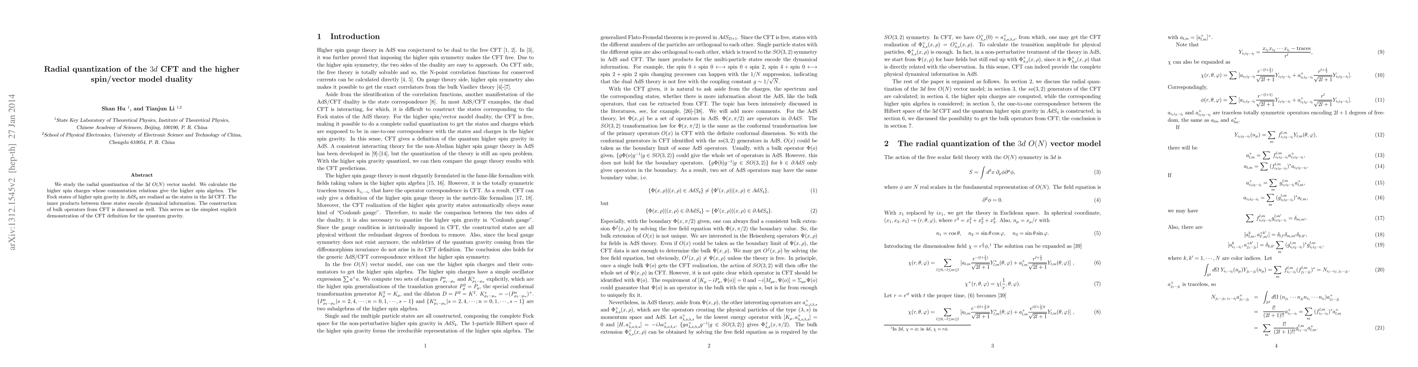 We study the radial quantization of the 3d O(N) vector model. We calculate the higher spin charges whose commutation relations give the higher spin algebra. The Fock states of higher spin gravity in AdS_{4} are realized as the states in the 3d CFT. The inner products between these states encode dynamical information. The construction of bulk operators from CFT is discussed as well. This serves as the simplest explicit demonstration of the CFT definition for the quantum gravity.