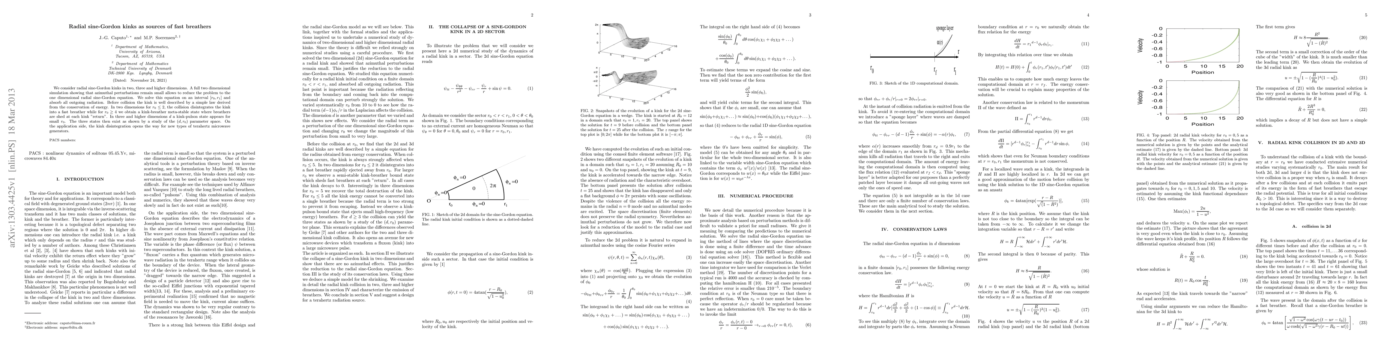 A full twodimensional simulation was performed to study radial sine-Gordon kinks in two dimensions.