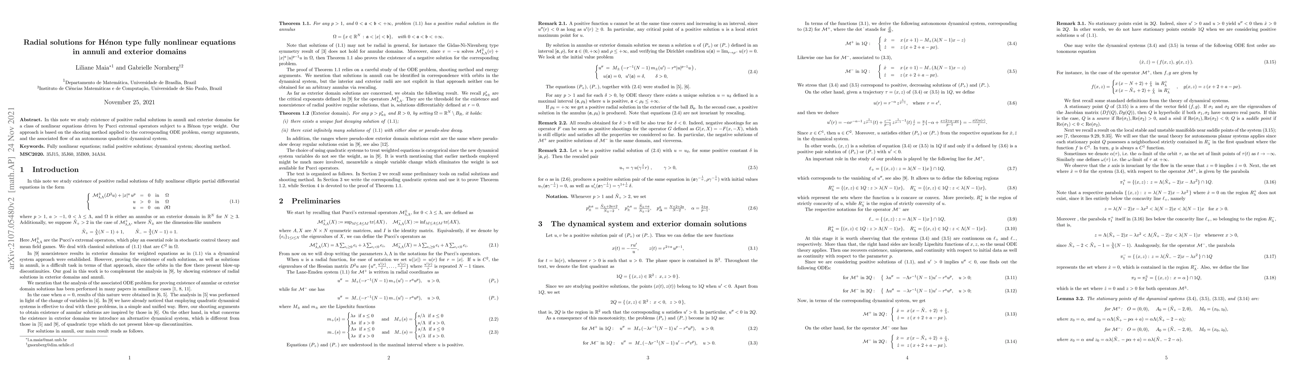This paper investigates the existence of positive radial solutions for H\'enon type fully nonlinear equations in annuli and exterior domains using Pucci extremal operators. The authors employ the shooting method for the ODE problem, energy arguments, and the dynamics of an autonomous quadratic system to achieve their results.