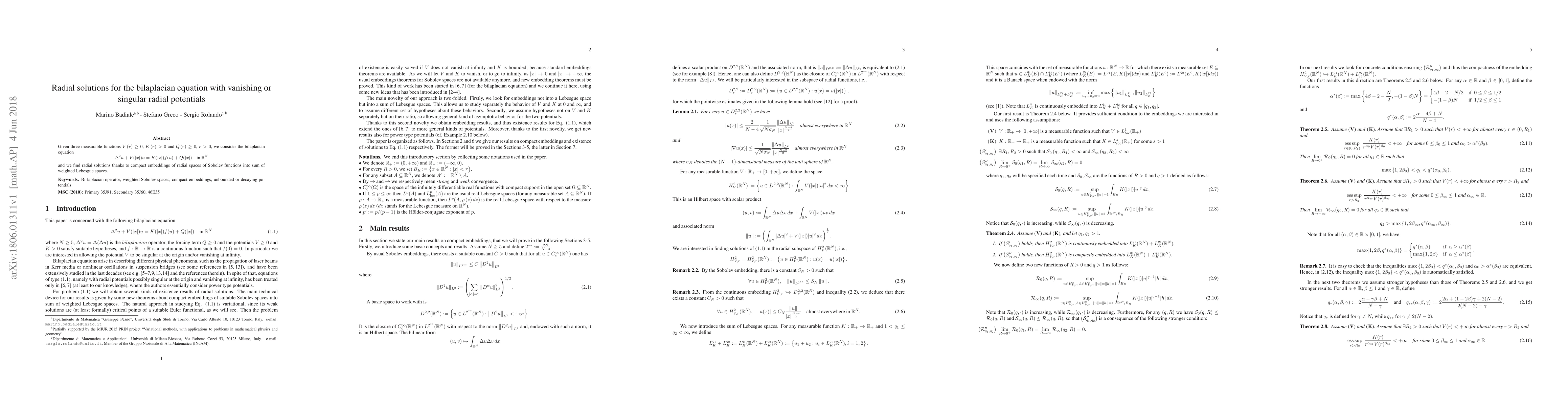 Given three measurable functions $V\left(r \right)\geq 0$, $K\left(r\right)> 0$ and $Q\left(r \right)\geq 0$, $r>0$, we consider the bilaplacian equation \[ \Delta^2 u+V(|x|)u=K(|x|)f(u)+Q(|x|) \quad \text{in }\,\mathbb{R}^N \] and we find radial solutions thanks to compact embeddings of radial spaces of Sobolev functions into sum of weighted Lebesgue spaces.