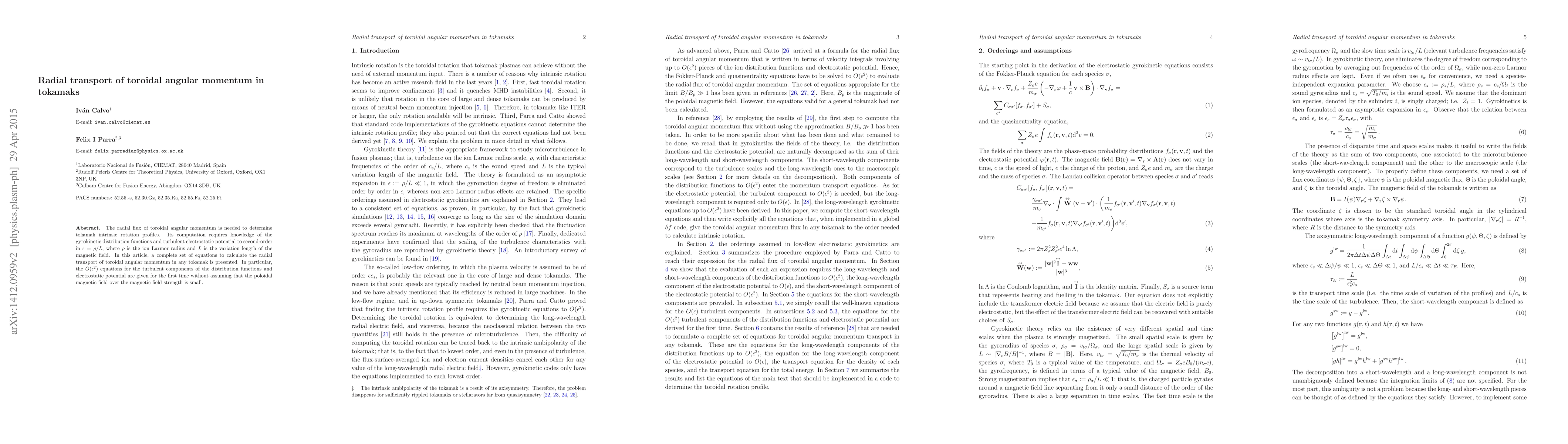 The radial flux of toroidal angular momentum is needed to determine tokamak intrinsic rotation profiles. Its computation requires knowledge of the gyrokinetic distribution functions and turbulent electrostatic potential to second-order in $\epsilon = \rho/L$, where $\rho$ is the ion Larmor radius and $L$ is the variation length of the magnetic field. In this article, a complete set of equations to calculate the radial transport of toroidal angular momentum in any tokamak is presented. In particular, the $O(\epsilon^2)$ equations for the turbulent components of the distribution functions and electrostatic potential are given for the first time without assuming that the poloidal magnetic field over the magnetic field strength is small.