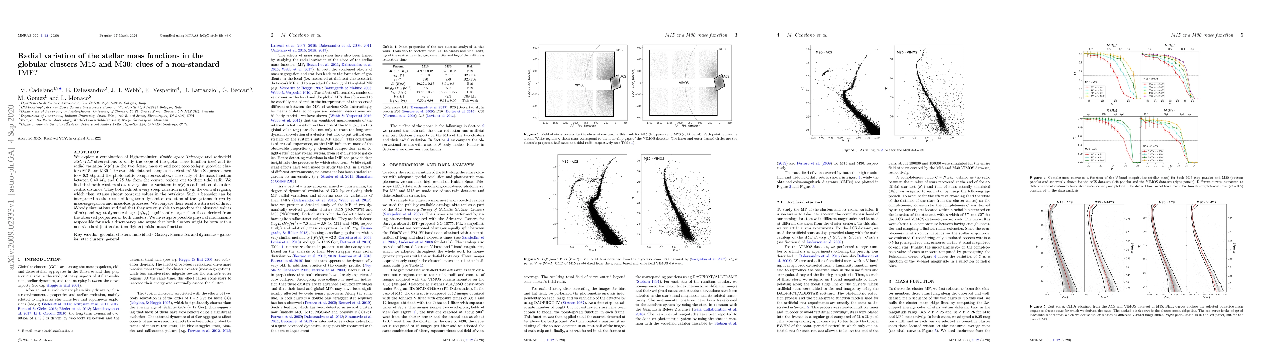 This study uses Hubble Space Telescope and ESO-VLT observations to analyze the radial variation in the stellar mass function of globular clusters M15 and M30, revealing a steep central gradient that flattens in the outskirts. The findings suggest a non-standard initial mass function due to discrepancies between observed and simulated mass function slopes.
