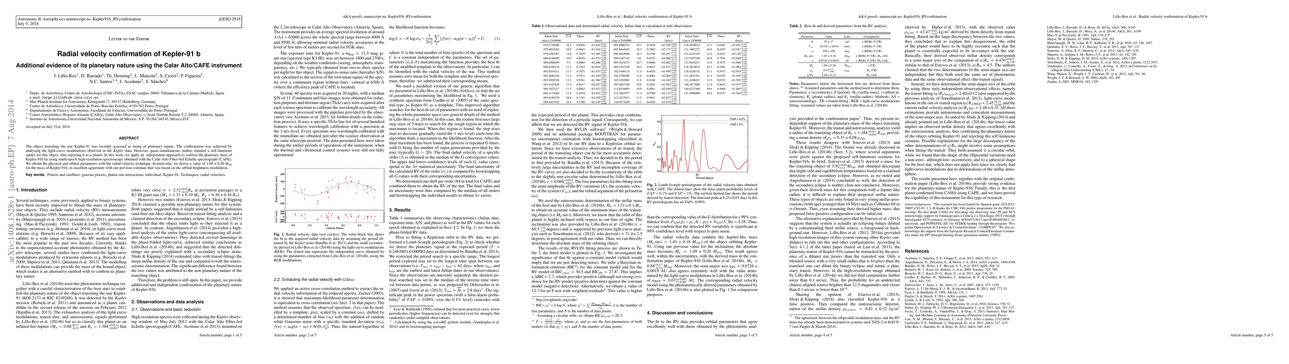 This study confirms the planetary nature of Kepler-91b using high-resolution spectroscopy from the Calar Alto/CAFE instrument, deriving a mass of $1.09 \pm 0.20\,M_{\mathrm{Jup}}$, which aligns with previous estimates based on the light-curve modulations.