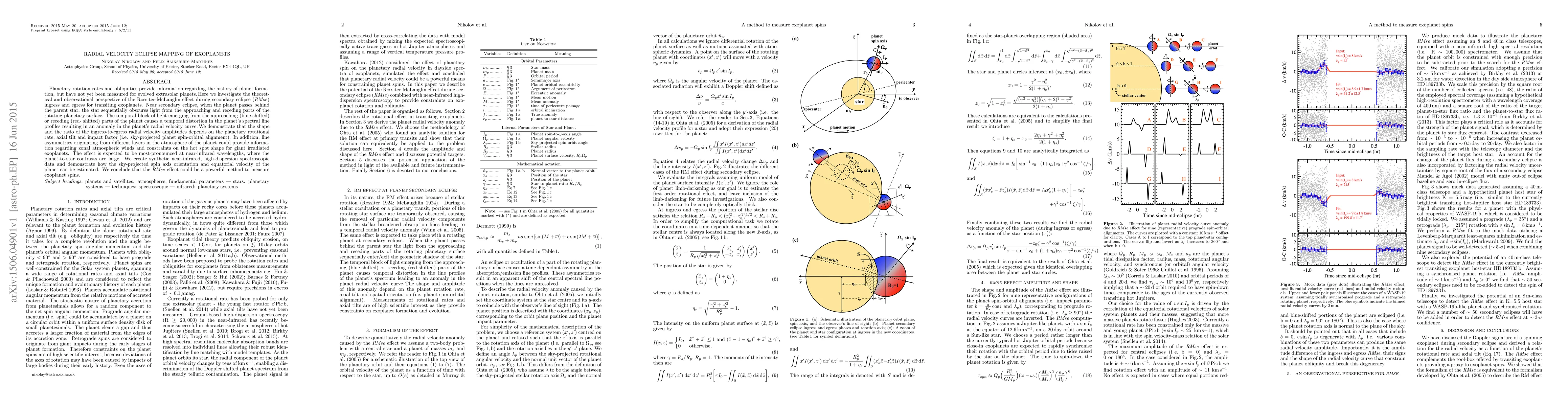 This paper explores the Rossiter-McLauglin effect during secondary eclipses of transiting exoplanets to measure planetary rotation rates and obliquities. The study demonstrates that the effect can reveal information about the planet's rotational dynamics and atmospheric winds, offering a powerful method for characterizing exoplanetary spins.