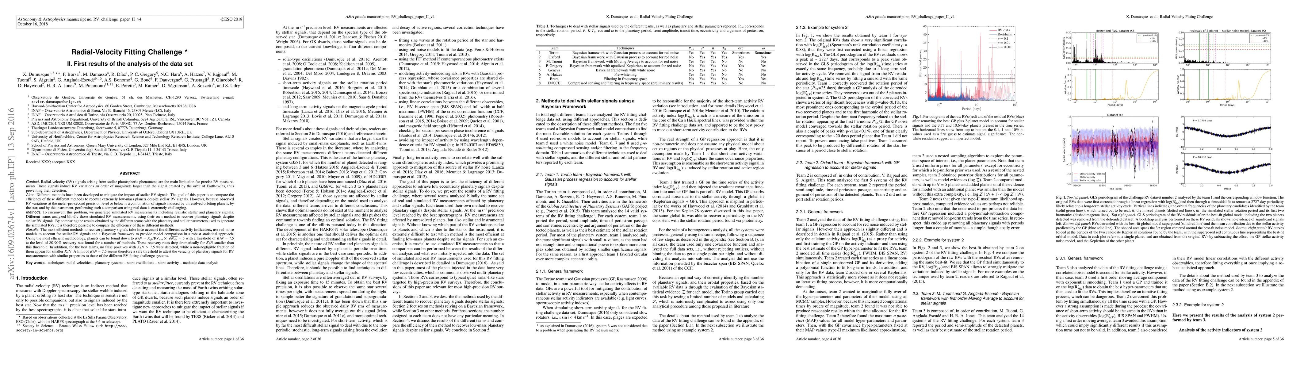 Radial-velocity (RV) signals induce RV variations an order of magnitude larger than the signal created by the orbit of Earth-twins, thus preventing their detection. The goal of this paper is to compare the efficiency of the different methods used to deal with stellar signals to recover extremely low-mass planets despite. However, because observed RV variations at the m/s precision level or below is a combination of signals induced by unresolved orbiting planets, by the star, and by the instrument, performing such a comparison using real data is extremely challenging. To circumvent this problem, we generated simulated RV measurements including realistic stellar and planetary signals. Different teams analyzed blindly those simulated RV measurements, using their own method to recover planetary signals despite stellar RV signals. By comparing the results obtained by the different teams with the planetary and stellar parameters used to generate the simulated RVs, it is therefore possible to compare the efficiency of these different methods. The most efficient methods to recover planetary signals {take into account the different activity indicators,} use red-noise models to account for stellar RV signals and a Bayesian framework to provide model comparison in a robust statistical approach. Using the most efficient methodology, planets can be found down to K/N= K_pl/RV_rms*sqrt{N_obs}=5 with a threshold of K/N=7.5 at the level of 80-90% recovery rate found for a number of methods. These recovery rates drop dramatically for K/N smaller than this threshold. In addition, for the best teams, no false positives with K/N > 7.5 were detected, while a non-negligible fraction of them appear for smaller K/N. A limit of K/N = 7.5 seems therefore a safe threshold to attest the veracity of planetary signals for RV measurements with similar properties to those of the different RV fitting challenge systems.