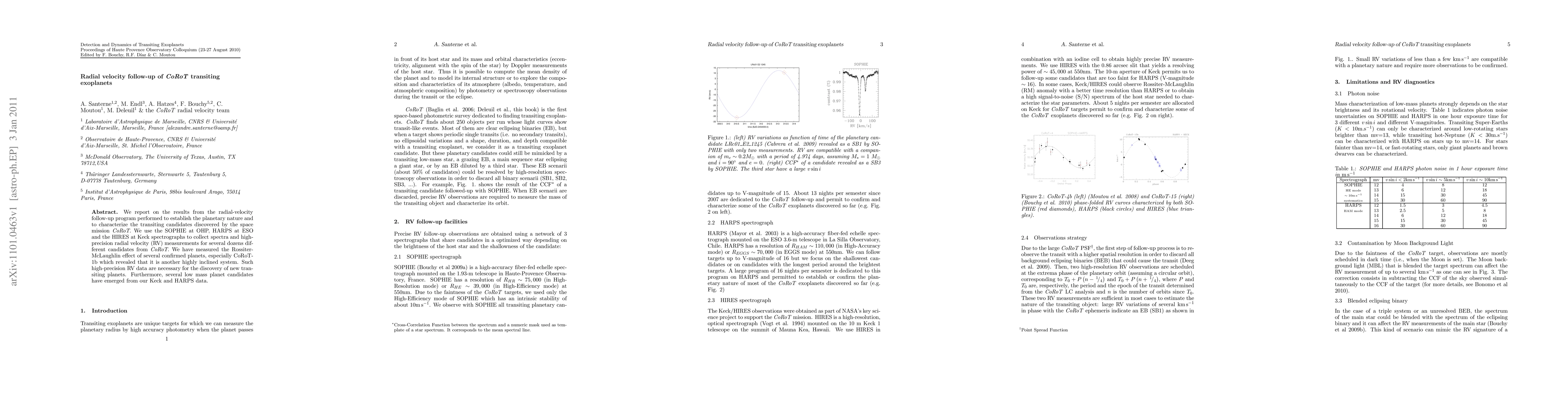 The study uses high-precision radial velocity measurements to confirm the planetary nature of CoRoT transiting exoplanets and discover new low-mass candidates.