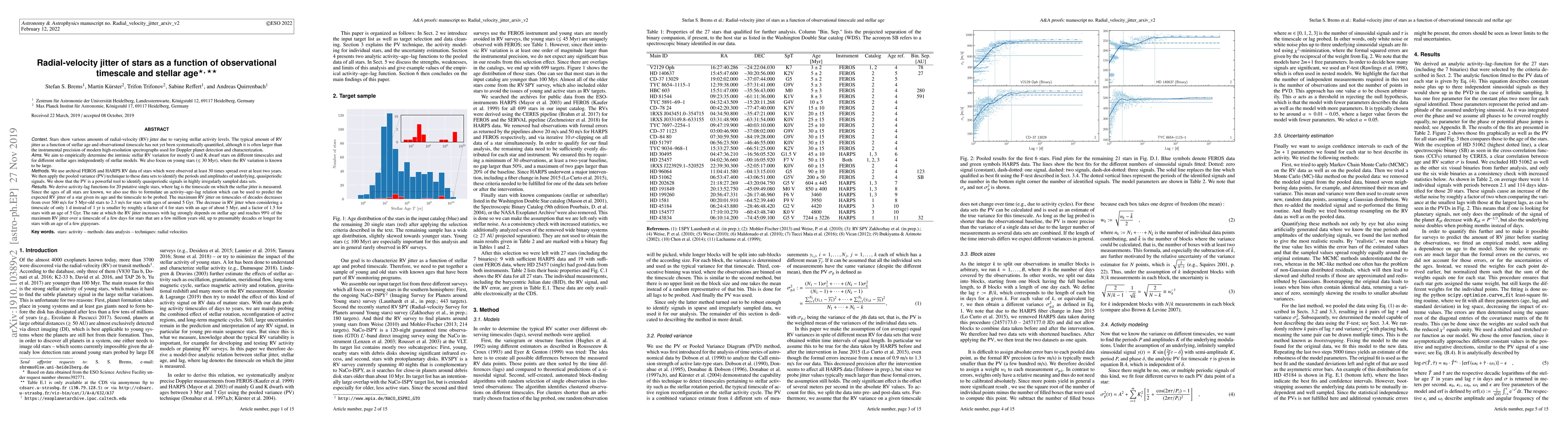 This study quantifies radial-velocity jitter in stars based on age and observational timescale, showing a decrease in jitter with increasing age and shorter observation periods.
