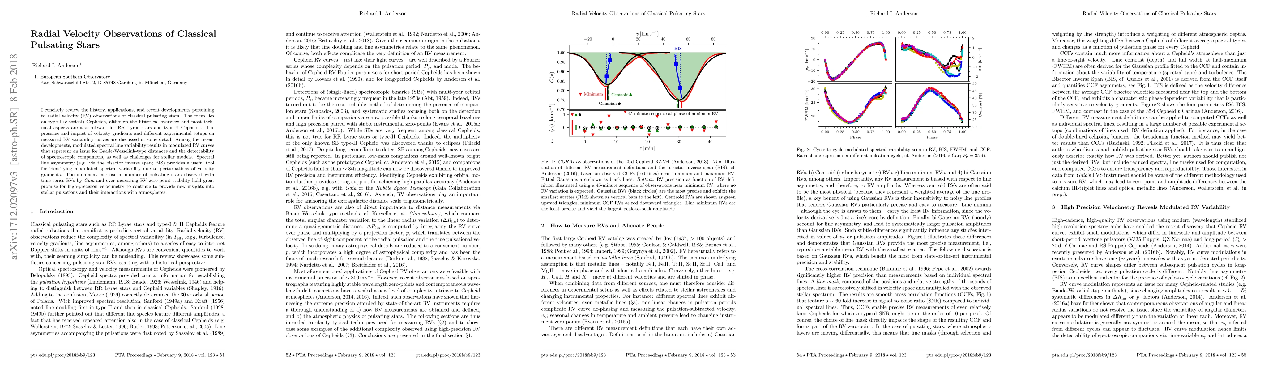 This paper reviews radial velocity (RV) observations of classical pulsating stars, focusing on type-I Cepheids, and discusses the impact of velocity gradients and spectral line asymmetries on RV measurements. It highlights recent developments, including the challenges posed by modulated spectral line variability and the promise of future high-precision observations from Gaia.