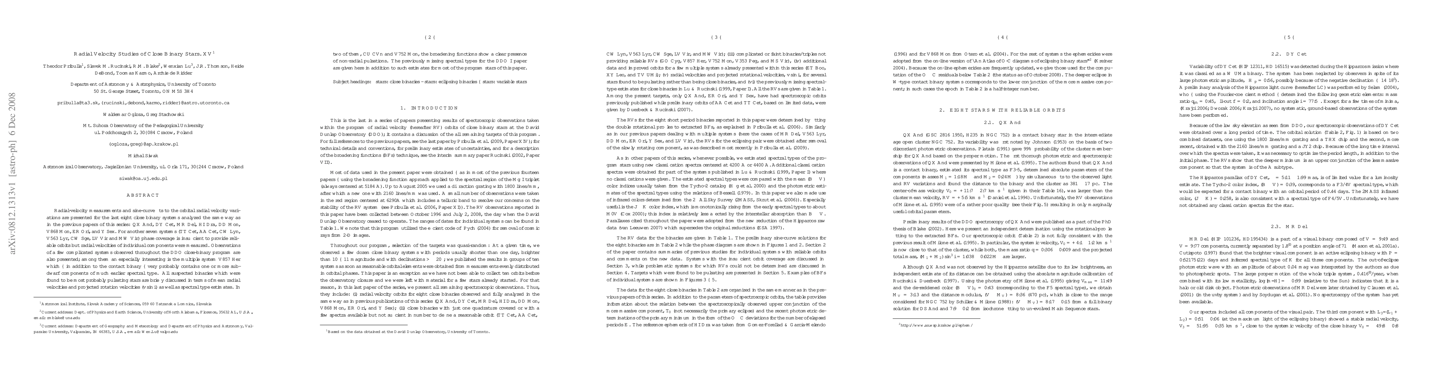 This paper presents radial velocity measurements and orbital analysis for eight close binary systems, while noting insufficient data for reliable orbits in seven others. It also discusses spectral types and potential non-radial pulsations in some stars, highlighting the complex multiple system V857 Her.