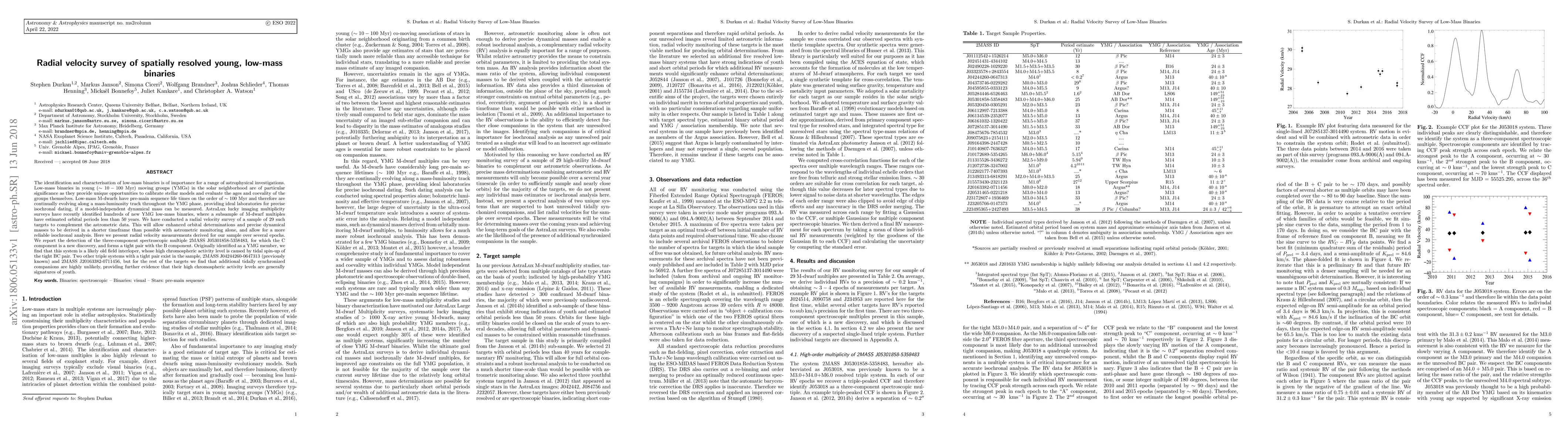 The identification and characterisation of low-mass binaries is of importance for a range of astrophysical investigations. Low-mass binaries in young ($\sim10 - 100 $ Myr) moving groups (YMGs) are of particular significance as they provide unique opportunities to calibrate stellar models and evaluate the ages and coevality of the groups themselves. Low-mass M-dwarfs have pre-main sequence life times on the order of $\sim100$ Myr and therefore are continually evolving along a mass-luminosity track throughout the YMG phase, providing ideal laboratories for precise isochronal dating, if a model-independent dynamical mass can be measured. AstraLux lucky imaging multiplicity surveys have recently identified hundreds of new YMG low-mass binaries, where a subsample of M-dwarf multiples have estimated orbital periods less than 50 years. We have conducted a radial velocity survey of a sample of 29 such targets to complement the astrometric data. This will allow enhanced orbital determinations and precise dynamical masses to be derived in a shorter timeframe than possible with astrometric monitoring alone, and allow for a more reliable isochronal analysis. Here we present radial velocity measurements for our sample over several epochs. We report the detection of the three-component spectroscopic multiple 2MASS J05301858-5358483, for which the C component is a new discovery, and forms a tight pair with the B component. Originally identified as a YMG member, we find that this system is a likely old field interloper, whose high chromospheric activity level is caused by tidal spin-up of the tight BC pair. Two other triple systems with a tight pair exist in the sample, but for the rest of the targets we find that additional tidally synchronized companions are highly unlikely, providing further evidence that their high chromospheric activity levels are generally signatures of youth.