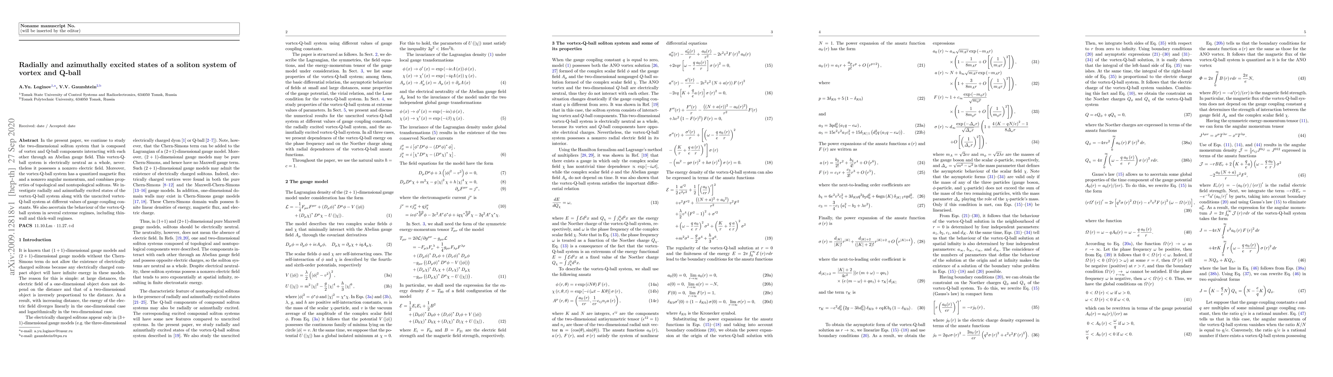 This research explores the radially and azimuthally excited states of a soliton system combining vortex and Q-ball components, interacting via an Abelian gauge field. The study examines these states at various gauge coupling constants and in extreme regimes, revealing the system's quantized magnetic flux, nonzero angular momentum, and hybrid topological-nontopological soliton properties.