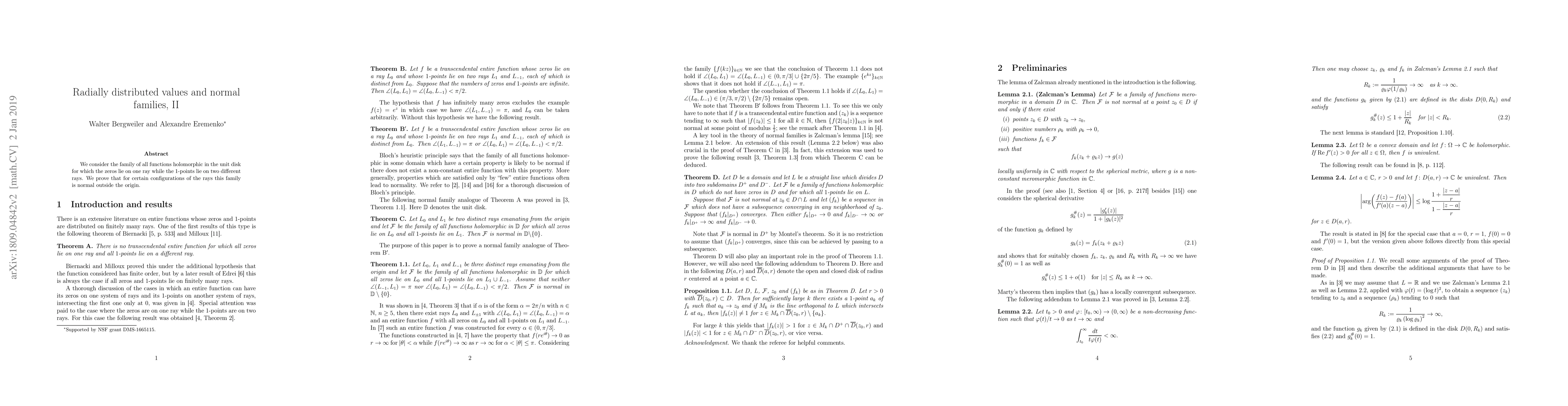 We consider the family of all functions holomorphic in the unit disk for which the zeros lie on one ray while the 1-points lie on two different rays. We prove that for certain configurations of the rays this family is normal outside the origin.