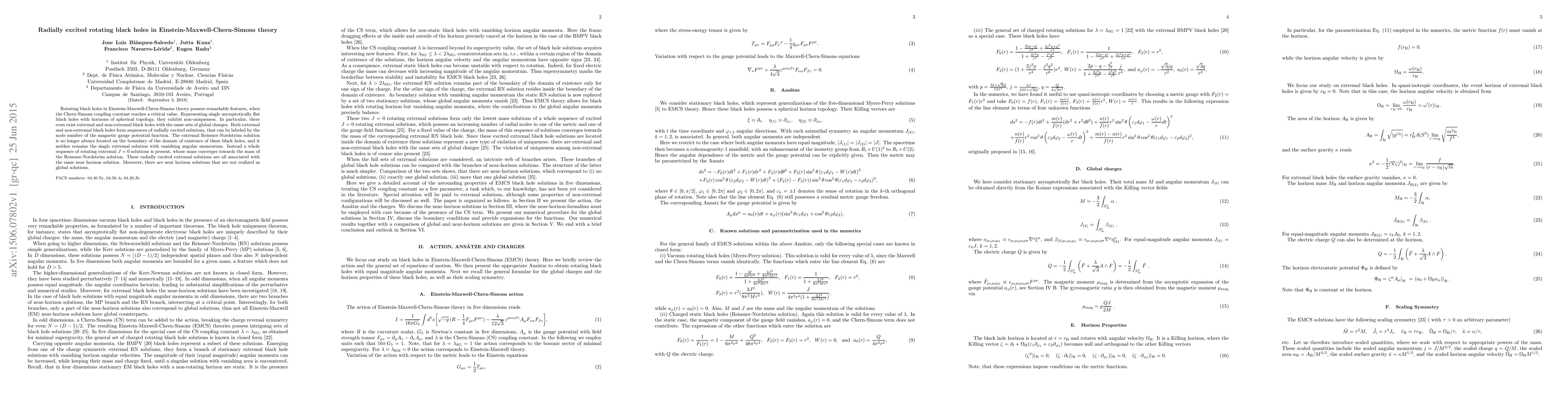 This paper explores rotating black holes in Einstein-Maxwell-Chern-Simons theory, revealing non-uniqueness when the Chern-Simons coupling reaches a critical value. It finds sequences of radially excited black holes, including extremal solutions converging to the Reissner-Nordström mass, all sharing the same near horizon structure.