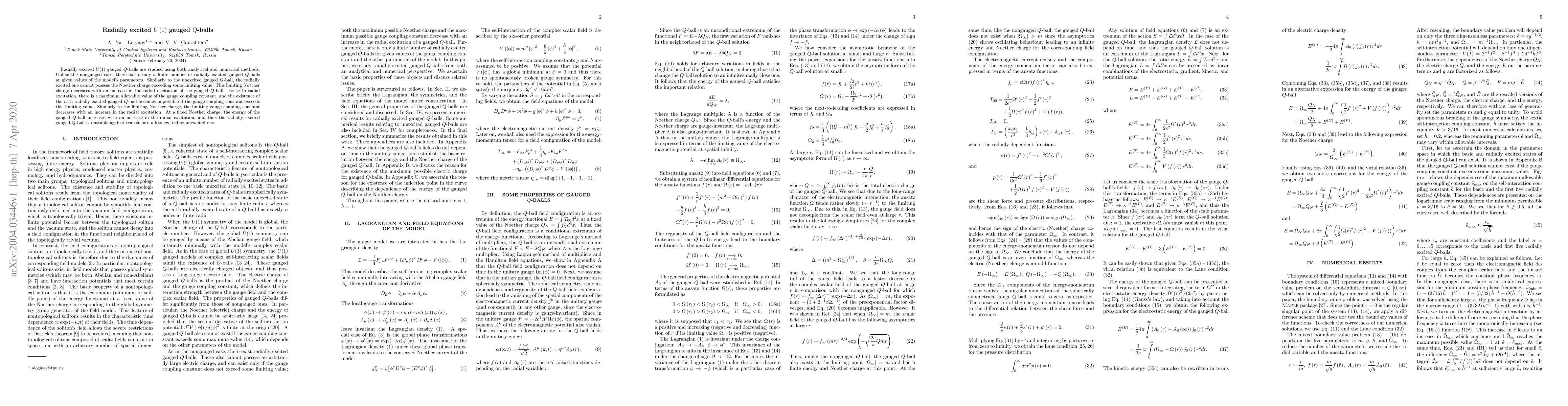 This paper explores radially excited $U(1)$ gauged $Q$-balls, revealing a finite number of such excitations and a decreasing maximum Noether charge and gauge coupling constant with higher excitations. The study concludes that radially excited gauged $Q$-balls are unstable and tend to transition to lower excitation states.
