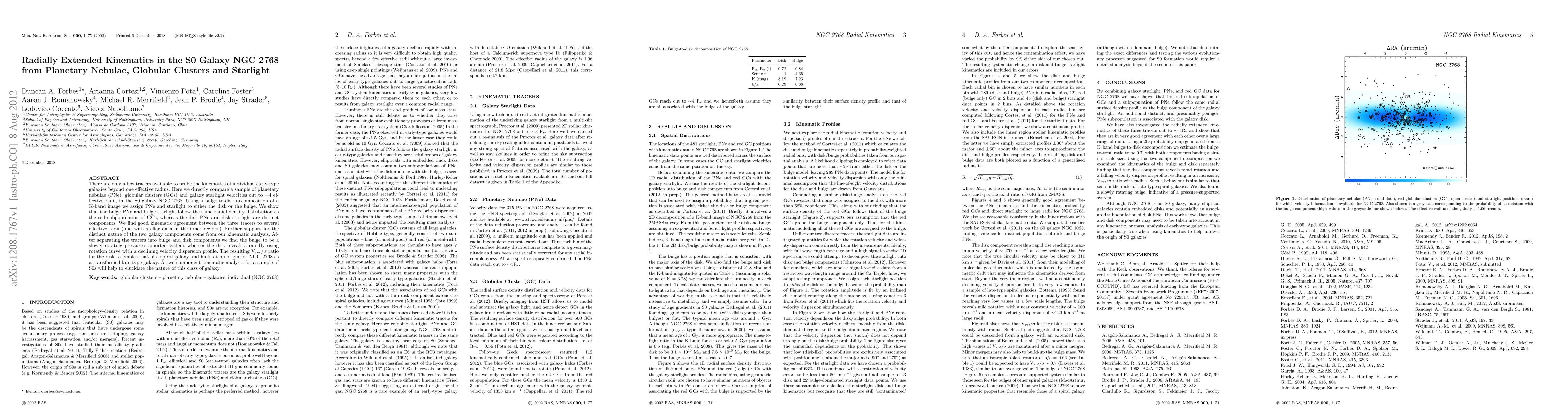 This paper investigates the radially extended kinematics of the S0 galaxy NGC 2768 using planetary nebulae, globular clusters, and starlight. It finds distinct kinematic behaviors between the bulge and disk components, suggesting the disk may have a spiral galaxy-like origin.