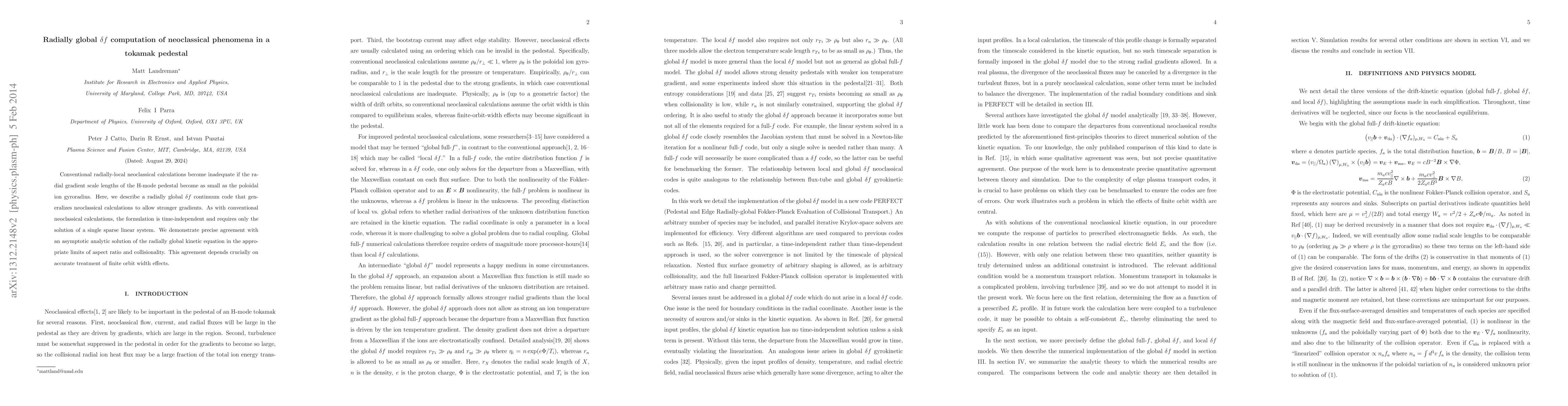 Conventional radially-local neoclassical calculations become inadequate if the radial gradient scale lengths of the H-mode pedestal become as small as the poloidal ion gyroradius. Here, we describe a radially global $\delta f$ continuum code that generalizes neoclassical calculations to allow stronger gradients. As with conventional neoclassical calculations, the formulation is time-independent and requires only the solution of a single sparse linear system. We demonstrate precise agreement with an asymptotic analytic solution of the radially global kinetic equation in the appropriate limits of aspect ratio and collisionality. This agreement depends crucially on accurate treatment of finite orbit width effects.