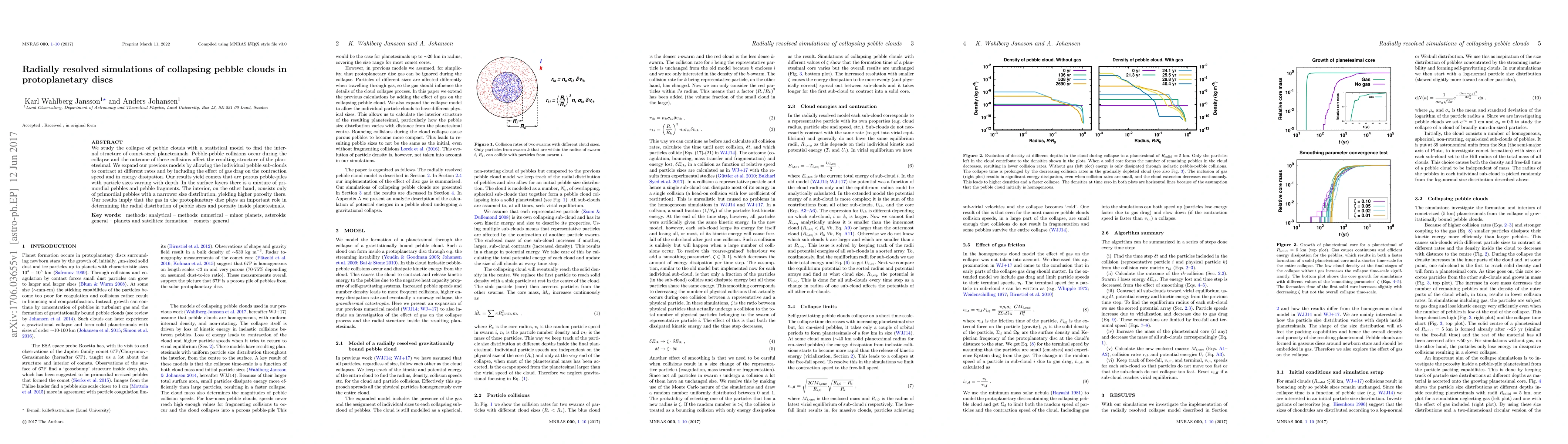 This study investigates the collapse of pebble clouds in protoplanetary discs to form comet-sized planetesimals, revealing that gas drag influences the contraction rate and energy dissipation. The resulting planetesimals are porous, with varying particle sizes and porosity depending on depth, suggesting the gas plays a crucial role in determining internal structure.