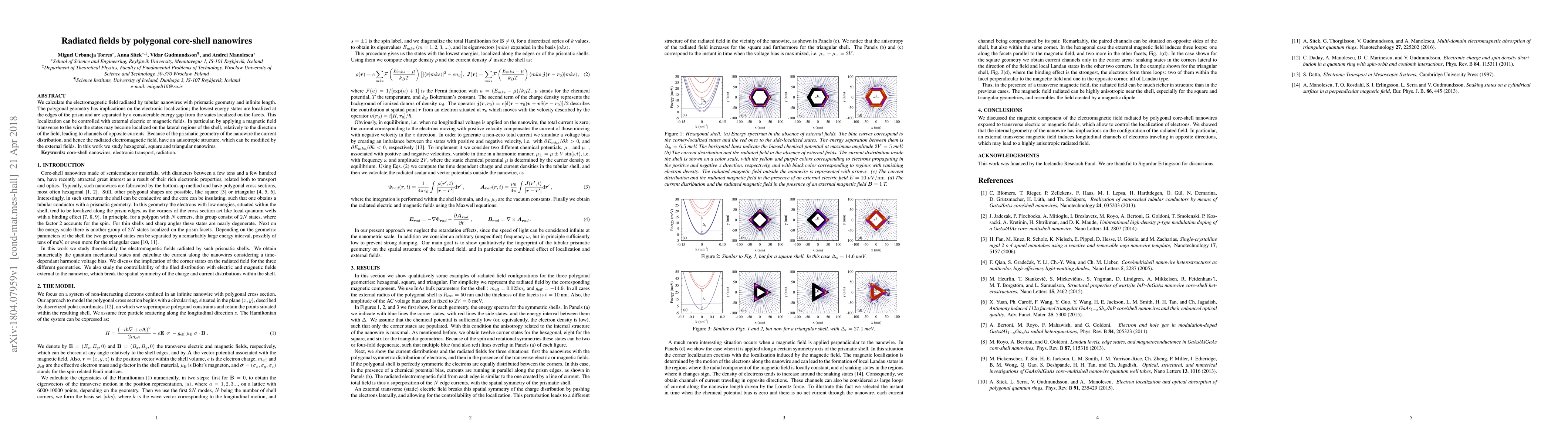 We calculate the electromagnetic field radiated by tubular nanowires with prismatic geometry and infinite length. The polygonal geometry has implications on the electronic localization; the lowest energy states are localized at the edges of the prism and are separated by a considerable energy gap from the states localized on the facets. This localization can be controlled with external electric or magnetic fields. In particular, by applying a magnetic field transverse to the wire the states may become localized on the lateral regions of the shell, relatively to the direction of the field, leading to channels of opposite currents. Because of the prismatic geometry of the nanowire the current distribution, and hence the radiated electromagnetic field, have an anisotropic structure, which can be modified by the external fields. In this work we study hexagonal, square and triangular nanowires.