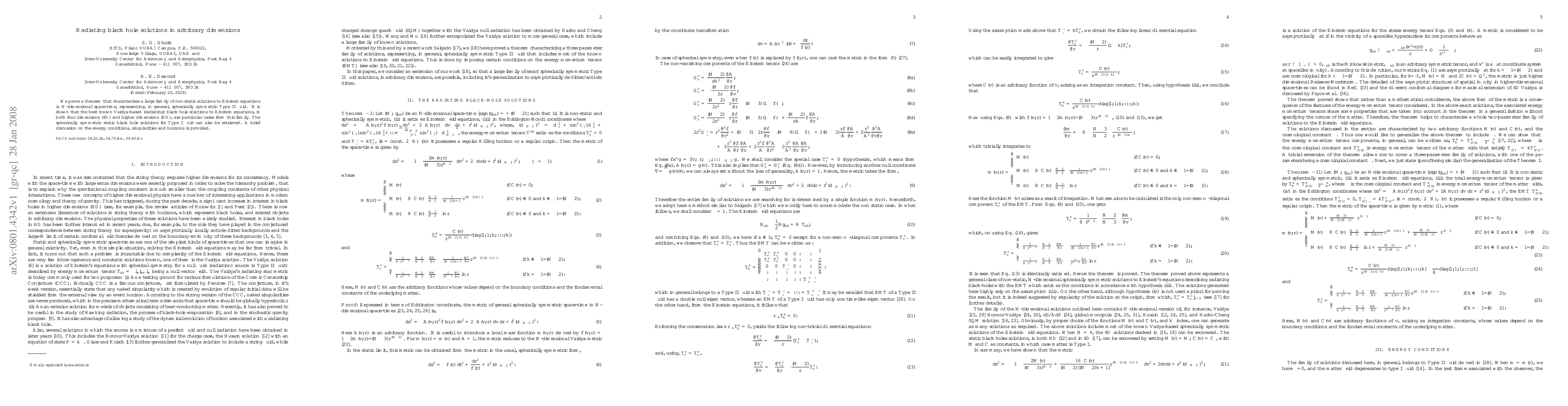 This paper proves a theorem identifying a broad family of non-static, spherically symmetric solutions to Einstein's equations in $N$-dimensional space-time, encompassing Vaidya-based radiating black holes in both 4D and higher dimensions. It also retrieves static black hole solutions for Type I fluid and briefly discusses energy conditions, singularities, and horizons.