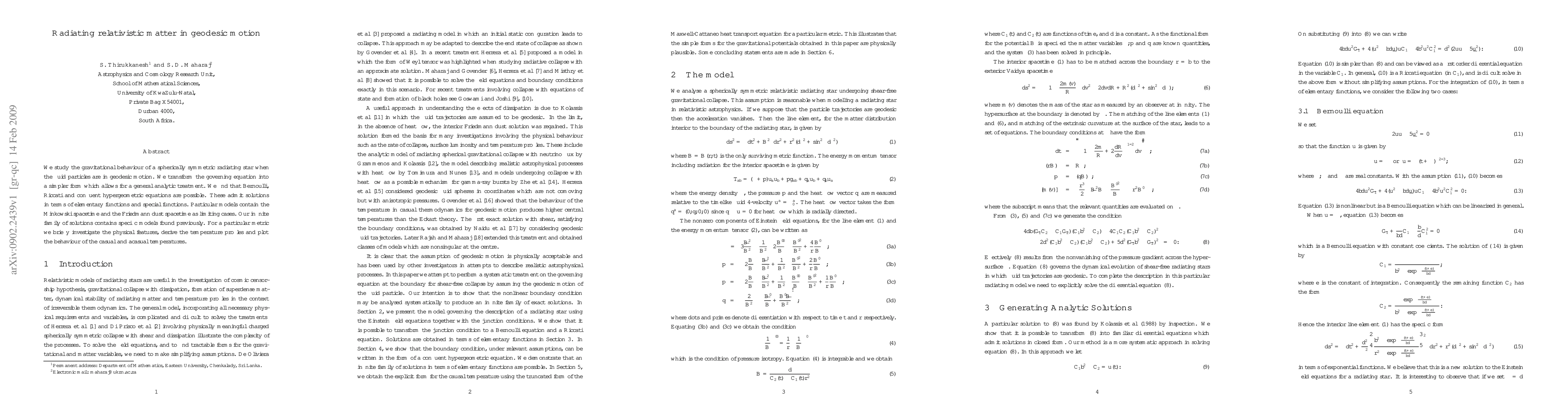 Researchers study a spherically symmetric radiating star in geodesic motion, finding an infinite family of solutions that include elementary functions and special functions, revealing models like Minkowski spacetime and Friedmann dust spacetime as limiting cases.