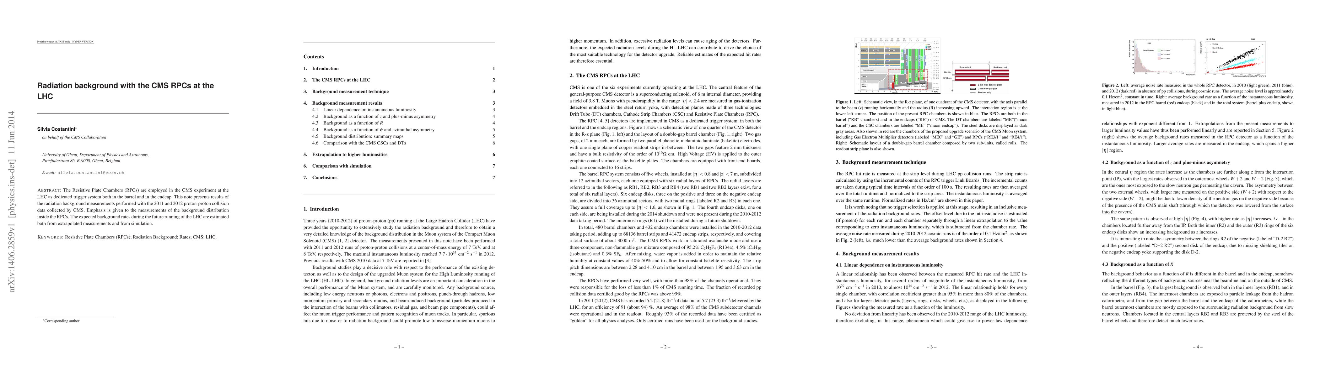 This paper reports on radiation background measurements with Resistive Plate Chambers (RPCs) in the CMS experiment at the LHC using data from 2011 and 2012 proton-proton collisions, focusing on the background distribution within the RPCs. It also estimates future background rates based on extrapolations and simulations.