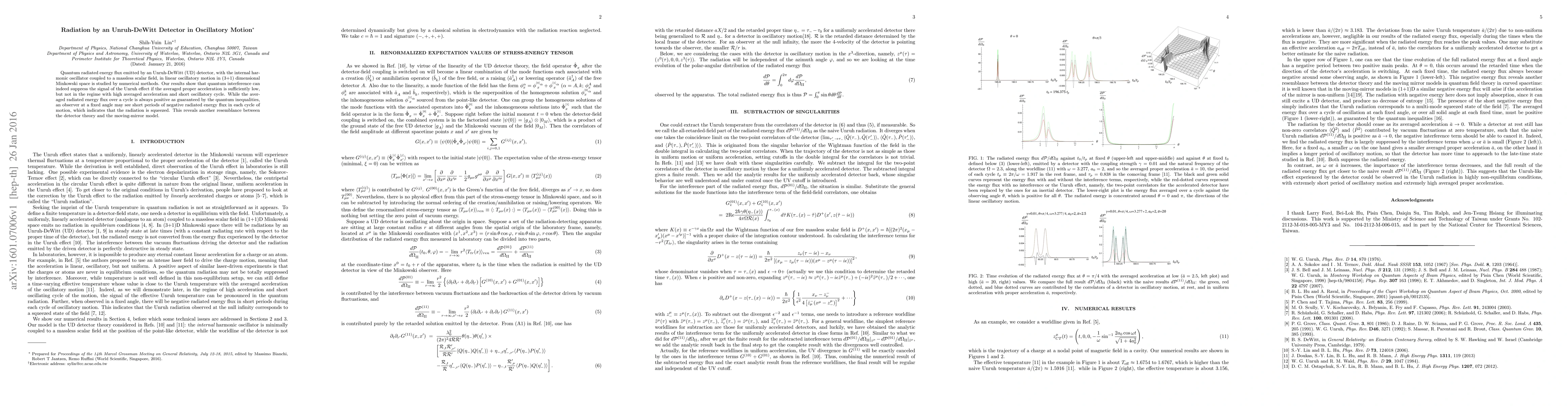 The paper presents a detailed numerical analysis of radiation by an Unruh-DeWitt detector in oscillatory motion, providing insights into quantum interference effects and their impact on the Unruh effect.