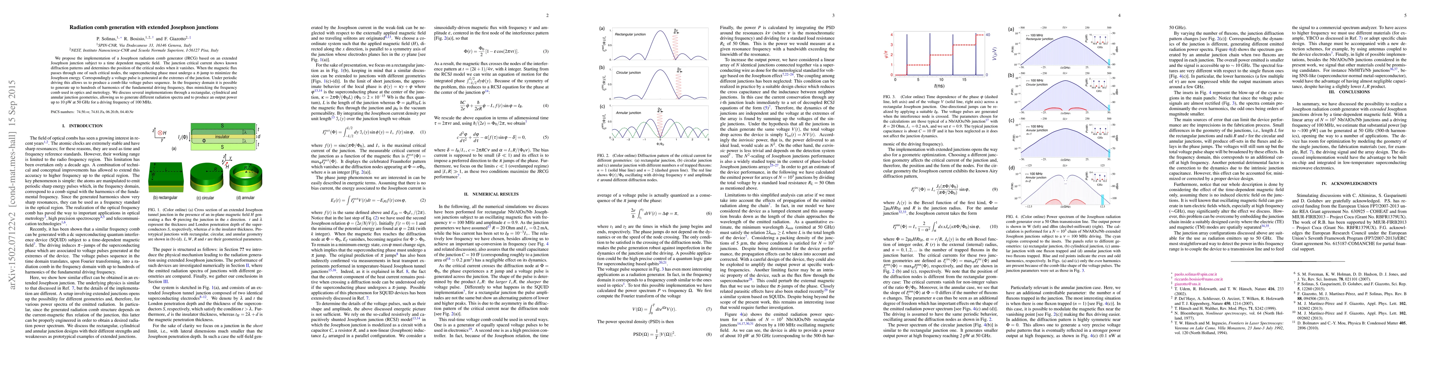 Researchers propose a method to generate radiation combs using extended Josephson junctions driven by a time-dependent magnetic field, mimicking optics and metrology applications with up to hundreds of harmonics.