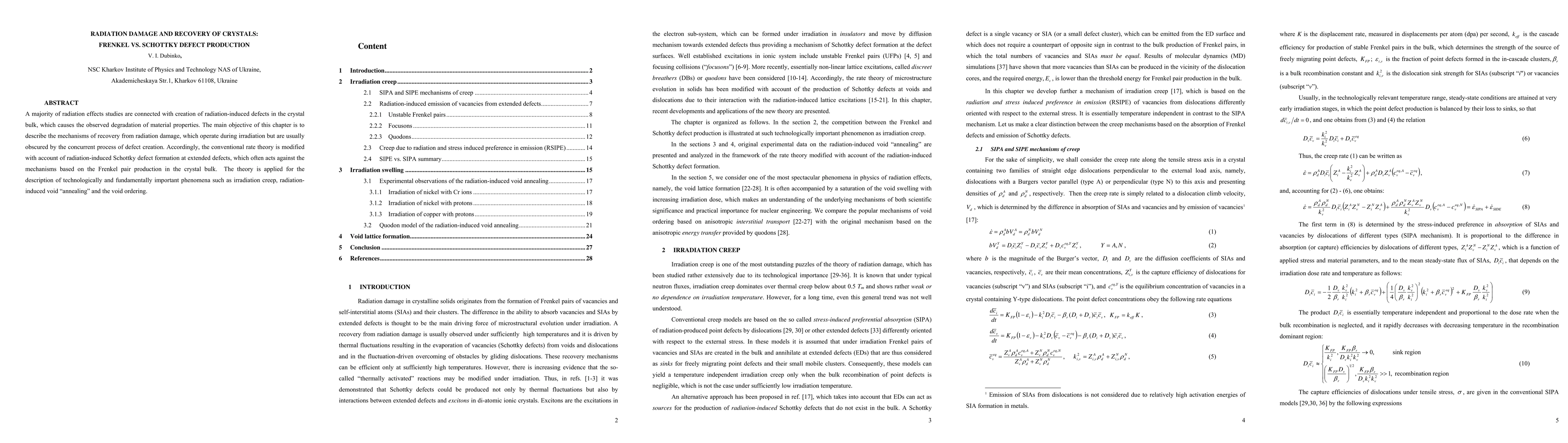 This paper explores how crystals recover from radiation damage, modifying conventional rate theory to account for Schottky defect formation. It applies this modified theory to describe phenomena like irradiation creep and void annealing in materials.