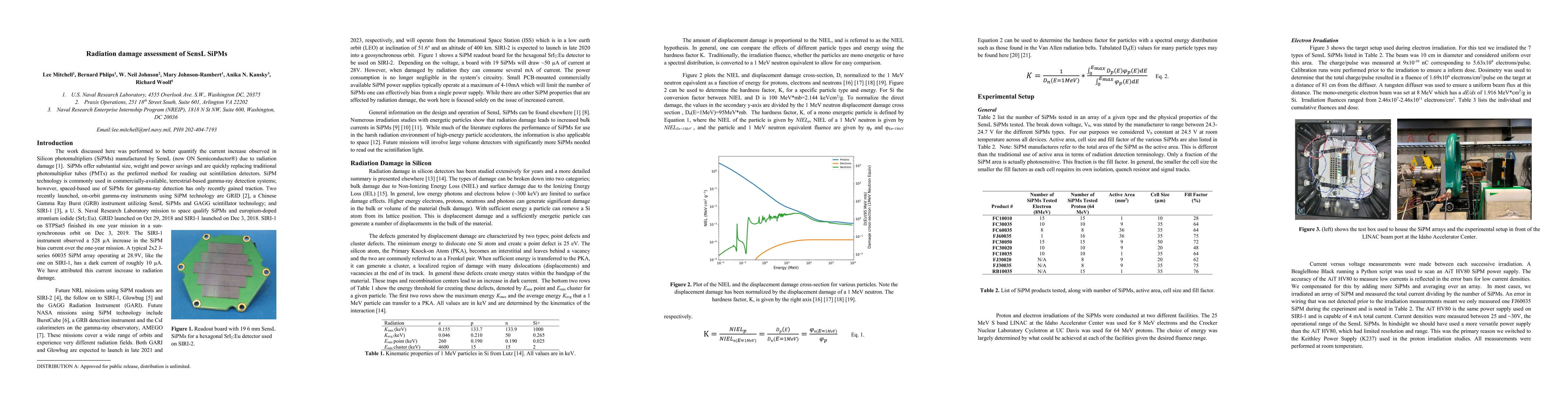 This study investigates the radiation damage susceptibility of SensL SiPMs, finding that larger cell sizes exhibit greater increases in current with increasing radiation dose. The U.S. Naval Research Laboratory's SIRI-1 mission observed a significant increase in the bias current of a 2x2 SensL J-series SiPM over one year, highlighting the need for further quantification of radiation damage effects for future space missions.