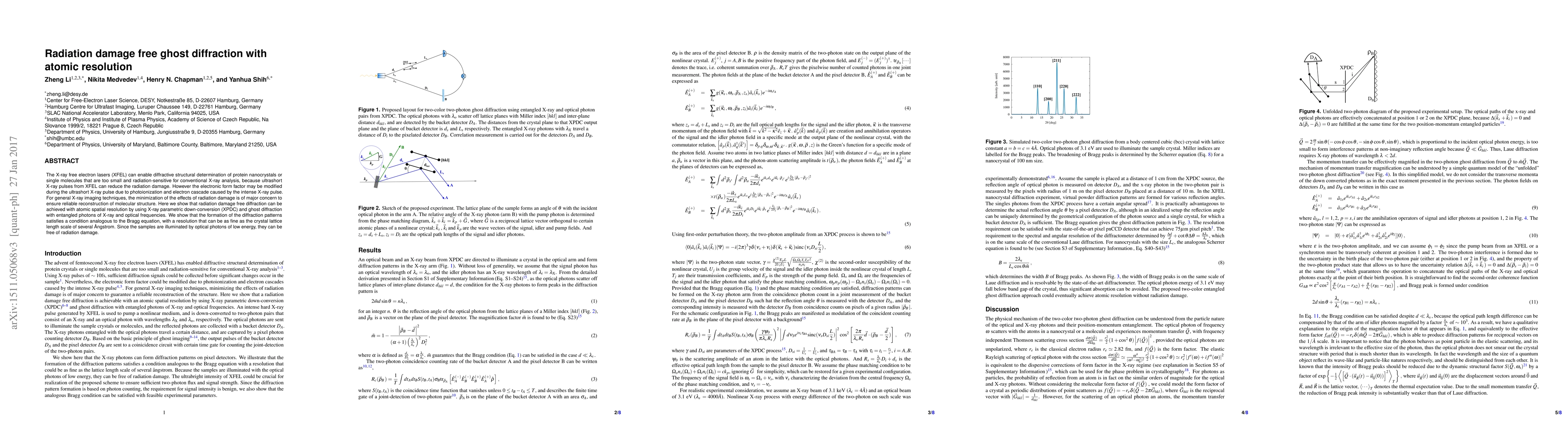 This paper demonstrates a novel method using X-ray parametric down-conversion and two-color two-photon ghost diffraction to achieve radiation-damage-free diffraction with atomic resolution, enabling structural determination of highly radiation-sensitive samples like protein crystals. This technique avoids the radiation damage typically caused by conventional X-ray analysis.