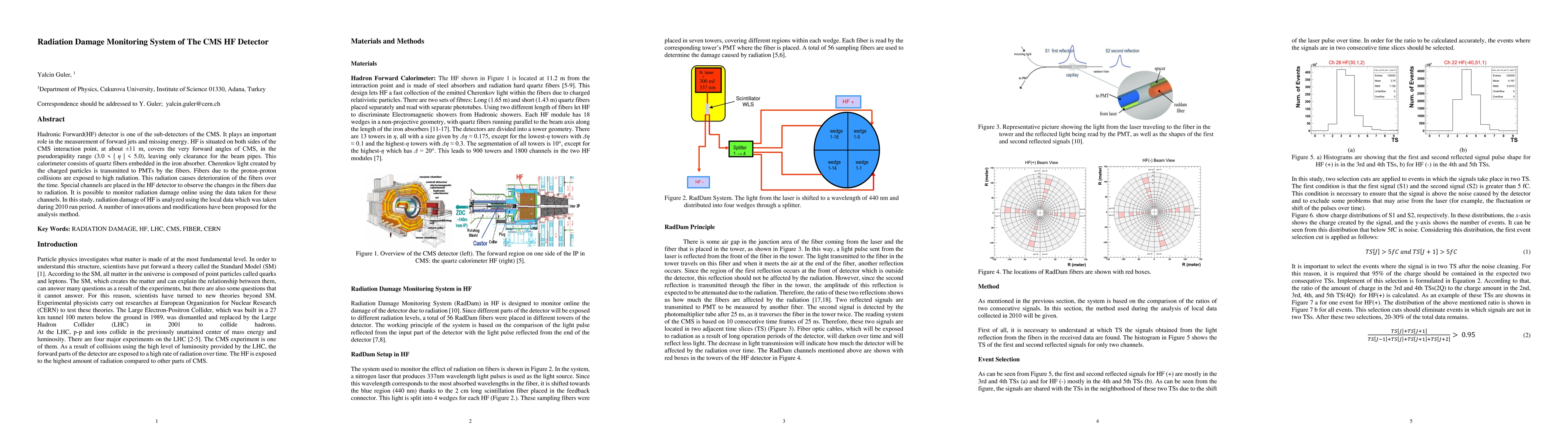 Hadronic Forward(HF) detector is one of the sub-detectors of the CMS. It plays an important role in the measurement of forward jets and missing energy. HF is situated on both sides of the CMS interaction point, at about $\pm$11 m, covers the very forward angles of CMS, in the pseudorapidity range (3.0 < | $\eta$ | < 5.0), leaving only clearance for the beam pipes. This calorimeter consists of quartz fibers embedded in the iron absorber. Cherenkov light created by the charged particles is transmitted to PMTs by the fibers. Fibers due to the proton-proton collisions are exposed to high radiation. This radiation causes deterioration of the fibers over the time. Special channels are placed in the HF detector to observe the changes in the fibers due to radiation. It is possible to monitor radiation damage online using the data taken for these channels. In this study, radiation damage of HF is analyzed using the local data which was taken during 2010 run period. A number of innovations and modifications have been proposed for the analysis method.