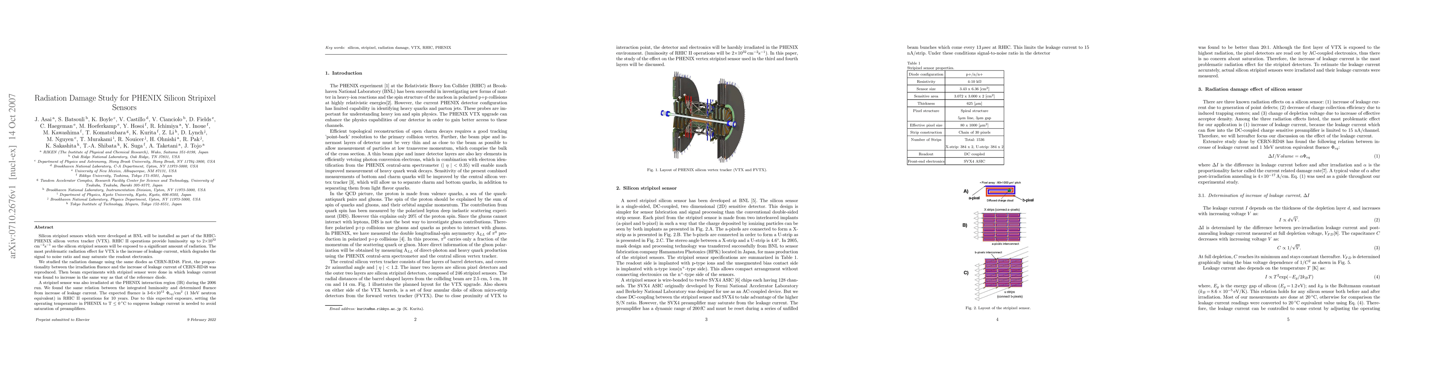 This study investigates the radiation damage on PHENIX silicon stripixel sensors used in the RHIC-PHENIX silicon vertex tracker, finding that increased leakage current is the most problematic radiation effect. Experiments confirmed the proportional relationship between irradiation fluence and leakage current increase, necessitating operation at T< 0 deg. C to prevent saturation during RHIC II operations.