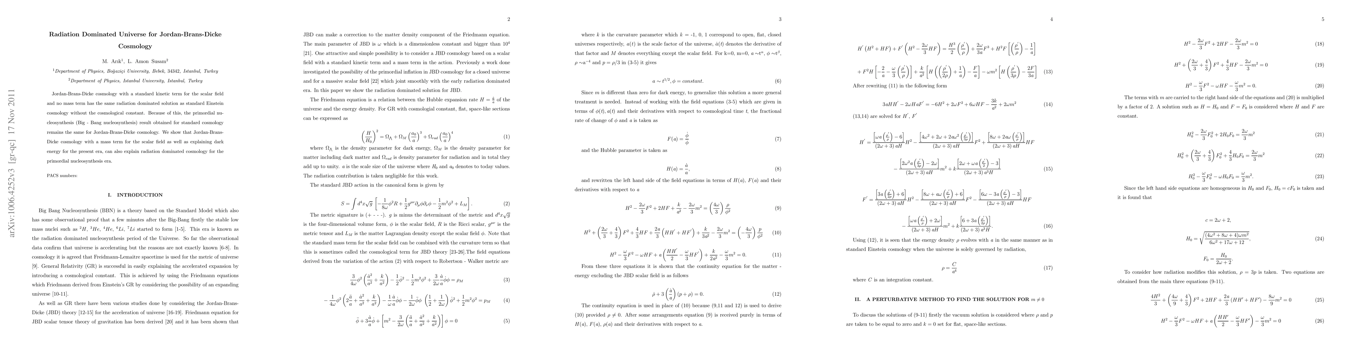 This paper demonstrates that Jordan-Brans-Dicke cosmology with a standard kinetic term for the scalar field matches the radiation-dominated solution of standard Einstein cosmology, preserving the same primordial nucleosynthesis results. It further shows that the same model, when including a mass term for the scalar field, can also explain the radiation-dominated universe during the era of primordial nucleosynthesis.